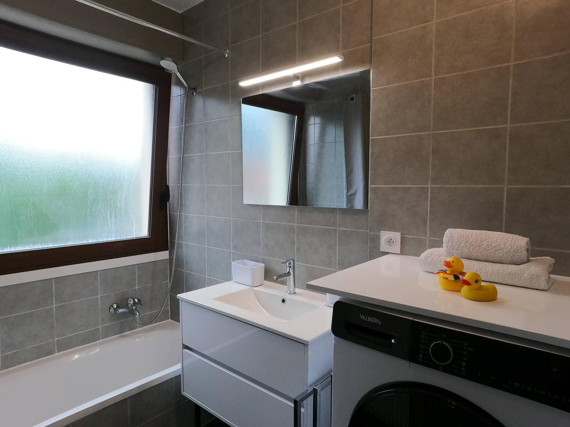 Au coeur de Bonneville, dans une résidence calme et sécurisée, charmant T2 meublé, rénové avec soin comprenant une entrée avec rangement, une cuisine équipée, un grand séjour, une chambre avec placard, une salle de bains et un WC séparé.