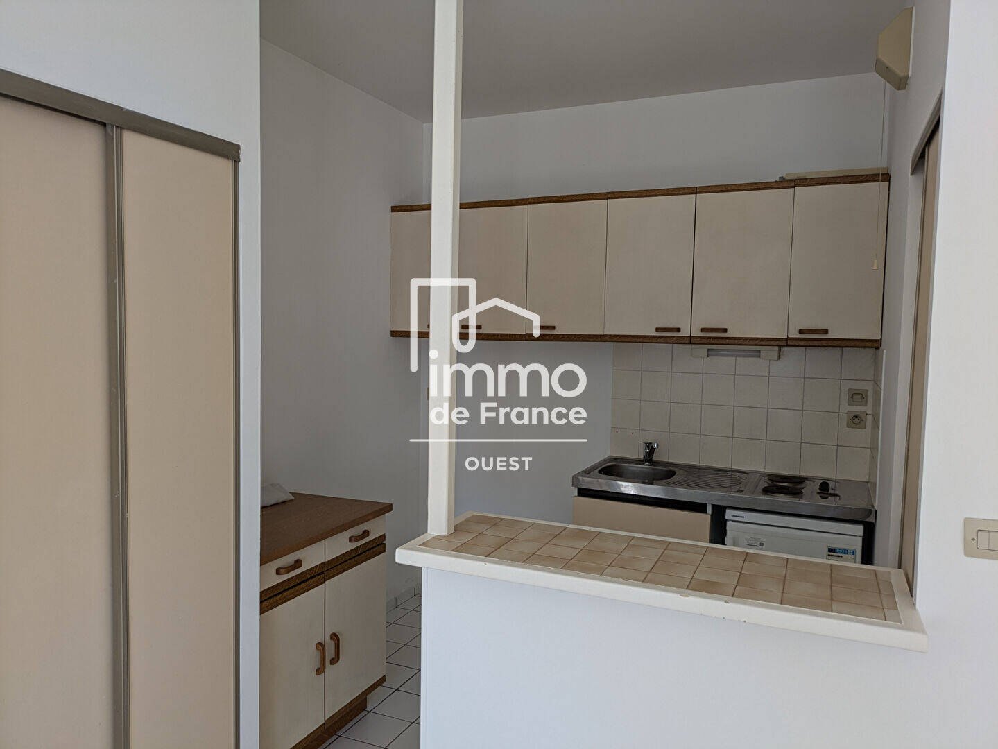A LOUER, quartier René Bouhier. Bel appartement 2 pièces au rez-de-chaussée donnant sur l'arrière de la résidence offrant une entrée, un séjour avec espace cuisine/bar aménagée et équipée (plaque, frigo et meubles de rangement), une chambre, une salle de bain neuve et WC séparés. Place de parking en sous-sol.
