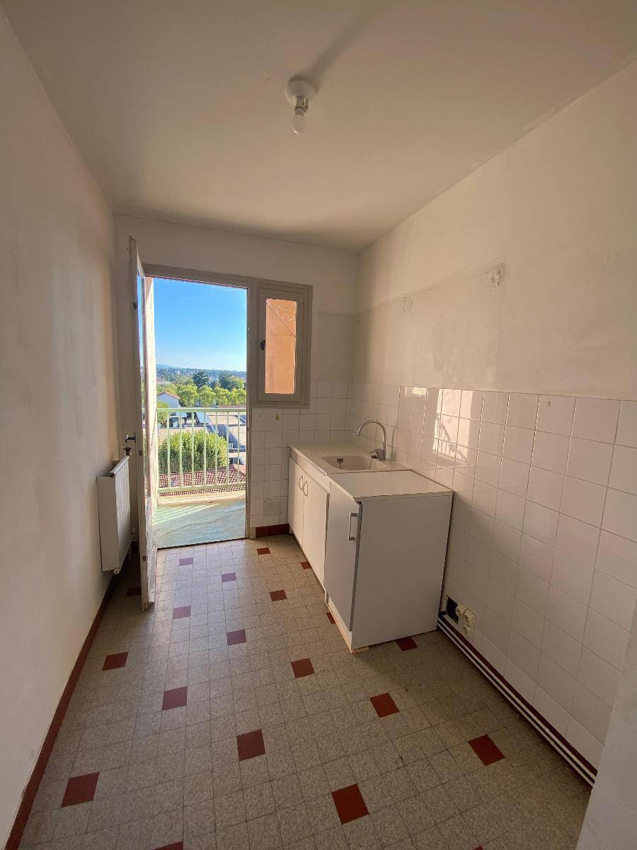 Cet appartement non meublé est composé d'un salon/séjour, d'une salle d'eau avec WC et d'une cuisine séparée avec accès à une loggia. L'appartement dispose également d'une cave et d'une place de parking en extérieur.