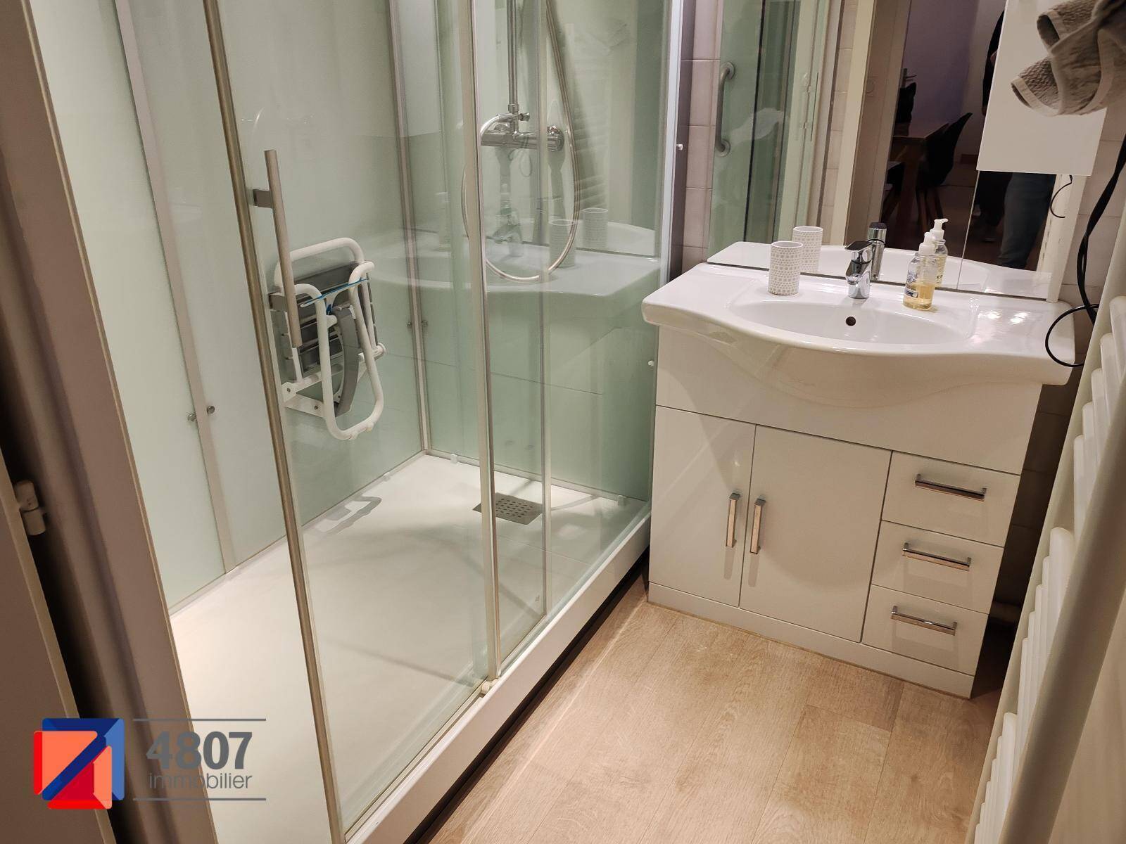 T2 SALLANCHES - 2 pièce(s) - 46 m2 - Au centre ville- F2 meublé de 46 m² au 1ème étage avec ascenseur- comprenant une entrée avec placard de rangement- cuisine avec rangements et plaques de cuisson et hotte- chambre avec placard de rangement- un séjour- cuisine équipée (plaque- hotte )- une salle de douche- Balcon . Le bien est soumis au statut de la copropriété.