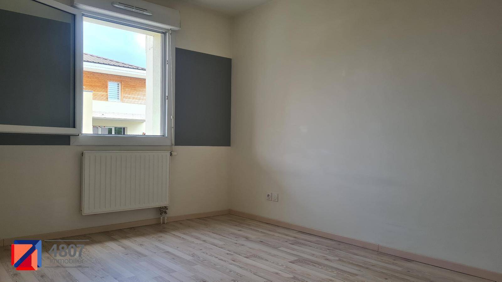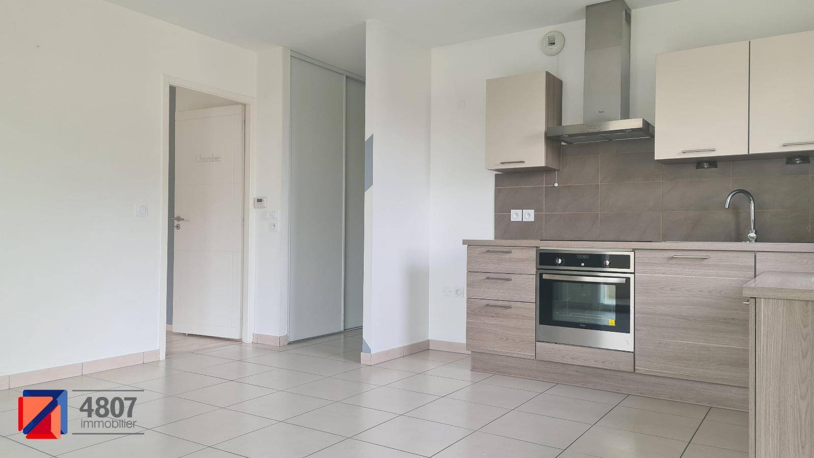 Charmant T2 - Sciez - Bel appartement T2 de 43.29 m² comprenant : une entrée avec grand placard de rangement, un séjour lumineux avec cuisine équipée ouverte donnant accès à un balcon, une grande chambre, et une salle de bains avec WC.