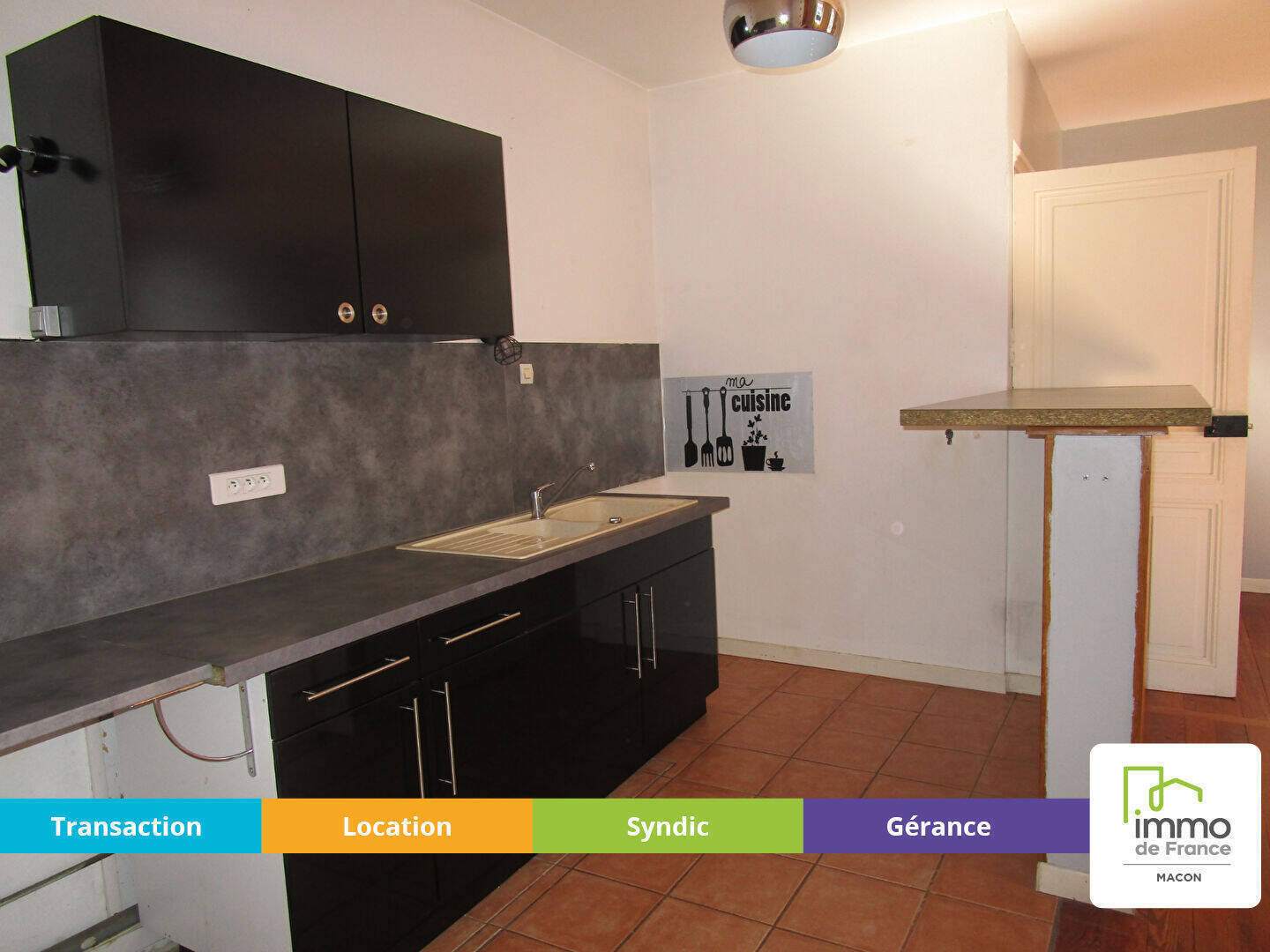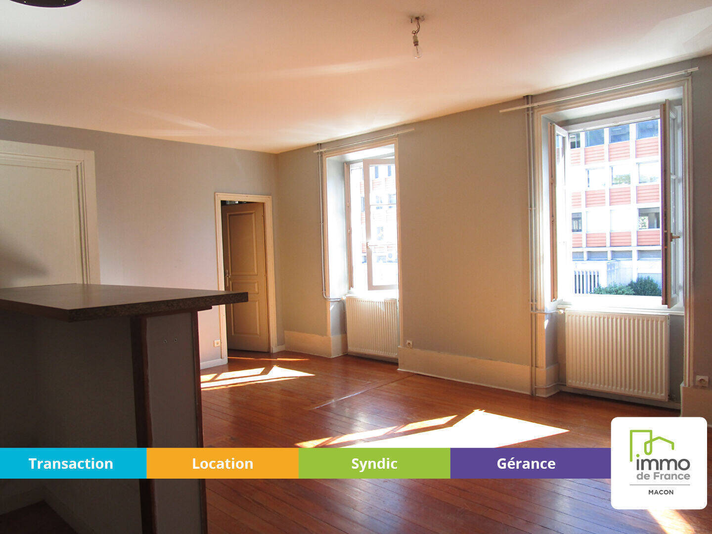 MACON - Rue de Paris - Proche commerces, cité administrative et INSPE - A LOUER Appartement de TYPE 3 : Entrée, Séjour avec coin cuisine aménagée à l'américaine, placard et cellier, 2 chambres avec placards muraux dont une avec dressing, salle de bains carrelée avec placard, WC - CLASSE ENERGIE E - CLASSE CLIMAT E - chauffage, eau chaude et froide compris dans le montant des charges - LIBRE LE 17/04/2026 - Loyer : 601.00 Euros CC dont 146.00 Euros de provisions de charges avec régularisation annuelle - Dépôt de Garantie : 455.00 Euros- Honoraires charges locataire 743.19 Euros TTC dont 156.46 Euros pour l'état des lieux - IMMO DE FRANCE 03.85.39.21.10