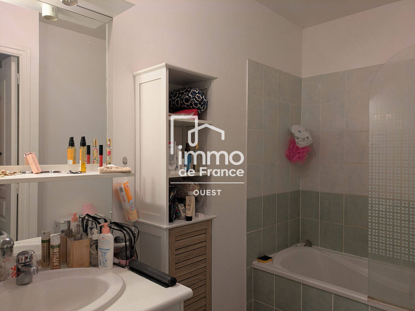 A l'étage : 2 chambres, palier avec placard, salle de bains (vasque sur meuble, baignoire, WC)