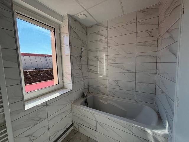 SAINTE COLOMBE - A deux pas de la passerelle dans immeuble sécurisé type 3 de 46.74m2 entièrement rénové comprenant un dégagement desservant une pièce de vie avec cuisine équipée (plaque cuisson, four, hotte, lave vaiselle) deux chambres, une salle de bains équipée, toilettes séparés, une cave, le chauffage est individuel gaz + installation d'une clim réversible et eau froide individuelle, appartement très lumineux