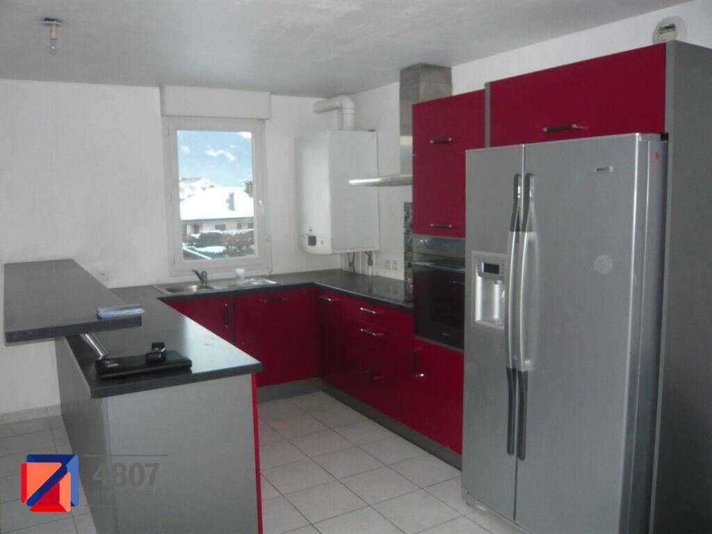 SCIONZIER - APPARTEMENT T3 A LOUER - SCIONZIER - APPARTEMENT T3 avec TERRASSE o GARAGE~~Situé au cœur d'une copropriété calme et récente- venez découvrir cet appartement T3 de 64 m².~Cet appartement comprend une entrée- une cuisine entièrement équipée ouverte sur un spacieux séjour de 30 m² avec accès sur sa terrasse exposée plein sud- deux chambres dont une avec placard intègre?- un WC ainsi qu'une salle de bains.~~Le bien comprend également un garage en sous-sol.~~A visiter rapidement !. Le bien est soumis au statut de la copropriété.