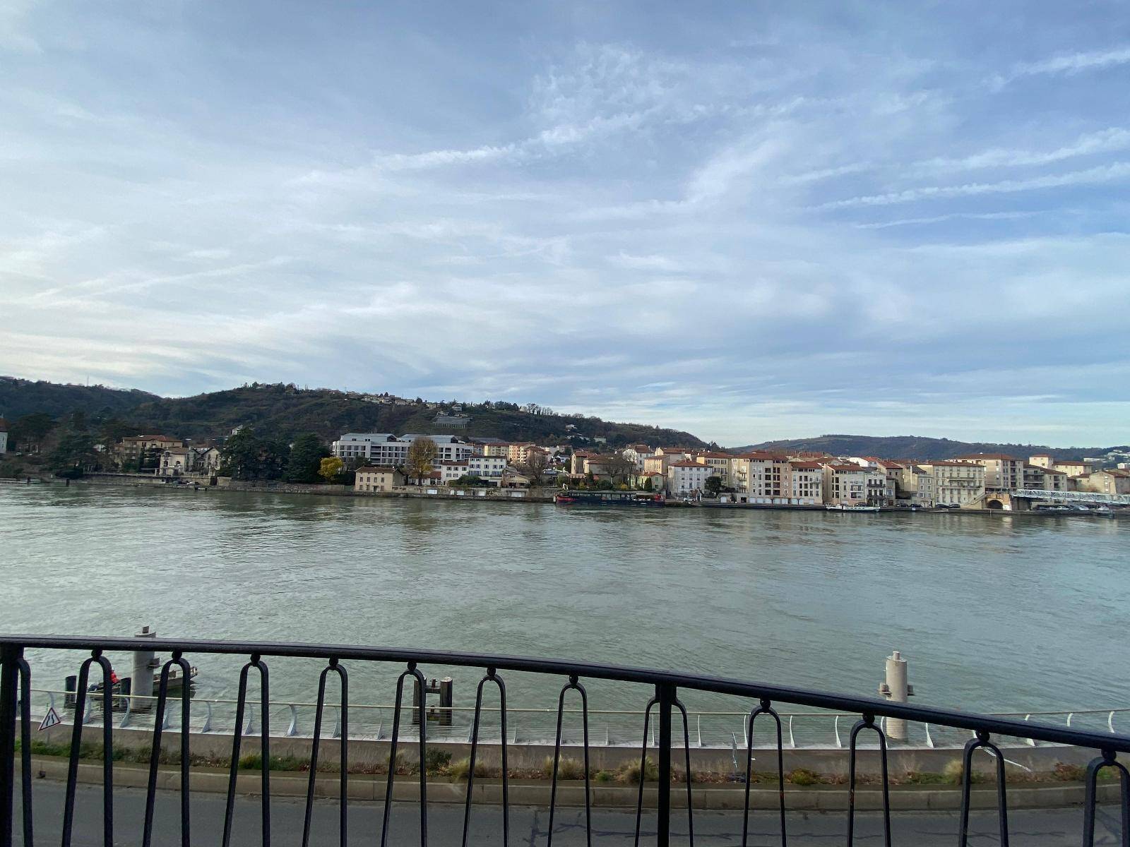 Vue imprenable sur le Rhône - En bordure du Rhône, dans une résidence de standing avec ascenseur et interphone, magnifique type 4 entièrement rénové avec des prestations de qualité au 3ème étage comportant une cuisine neuve moderne et équipée (plaque cuisson, hotte, four, éléments haut et bas), une grande pièce de vie de 36 m2 lumineuse ouverte sur un immense balcon ensoleillé offrant une vue dégagée sur le Rhône et ses environs, 2 chambres spacieuses dont une de 17 m², dressing, salle d'eau contemporaine avec meuble vasque et douche à l'italienne, un wc séparé, une cave. Chauffage individuel gaz.