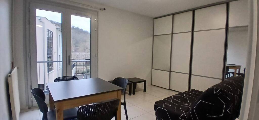 Au 2ème étage d'une petite résidence à 2 pas du centre ville et des commodités, appartement T1 meublé et entièrement rénové comprenant : une entrée (avec placard) une salle d'eau avec wc, une cuisine équipée et une pièce de vie avec placard et balcon + cave en s/sol