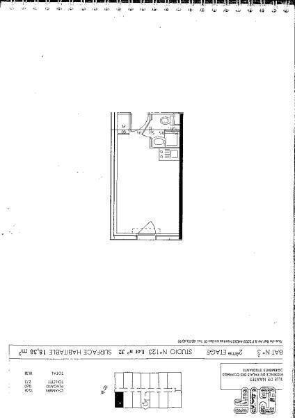 Il se compose d'une entrée avec placards, d'une pièce de vie avec coin cuisine équipé et d'une salle d'eau avec douche et wc.