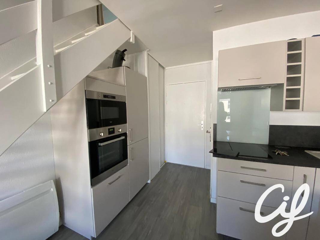 Ce T1 BIS EN DUPLEX ENTIEREMENT MEUBLE de 33 m2 est composé d'une entrée avec placard, d'un WC séparé, d'une pièce principale ouverte sur la cuisine entièrement aménagée et équipée, à l'étage une chambre avec coin bureau et une salle d'eau.