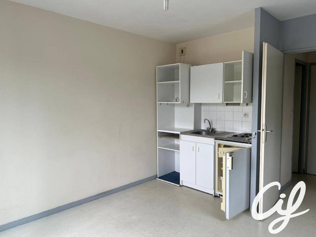 Il vous offre une entrée avec placard, une pièce de vie avec coin cuisine (frigo Top + 2 plaques électriques, rangements hauts et bas) donnant sur un balcon et une salle d'eau.