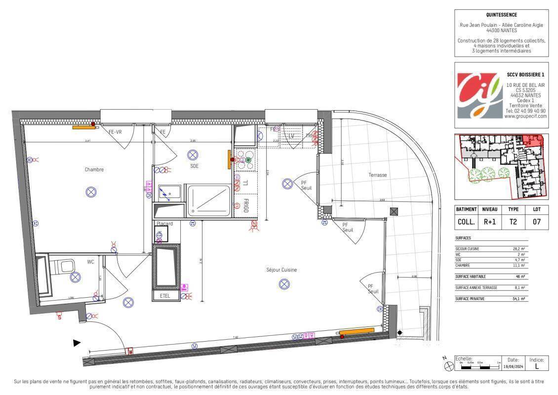 Dispose d'une entrée, d'une pièce de vie avec cuisine aménagée et équipée d'une plaque de cuisson, d'une hotte et d'un four, d'une chambre, d'une salle d'eau avec douche, pare-douche et meuble-vasque, d'un WC séparé, d'un cellier situé au RDC et d'une place de stationnement au sous-sol.