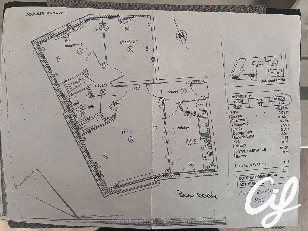 Un appartement 3 pièces comprenant, une entrée avec placard, une cuisine ouverte sur le salon, un grand séjour lumineux, un dégagement desservant deux chambres, une salle de bains avec baignoire et emplacement machine à laver, un WC séparé.