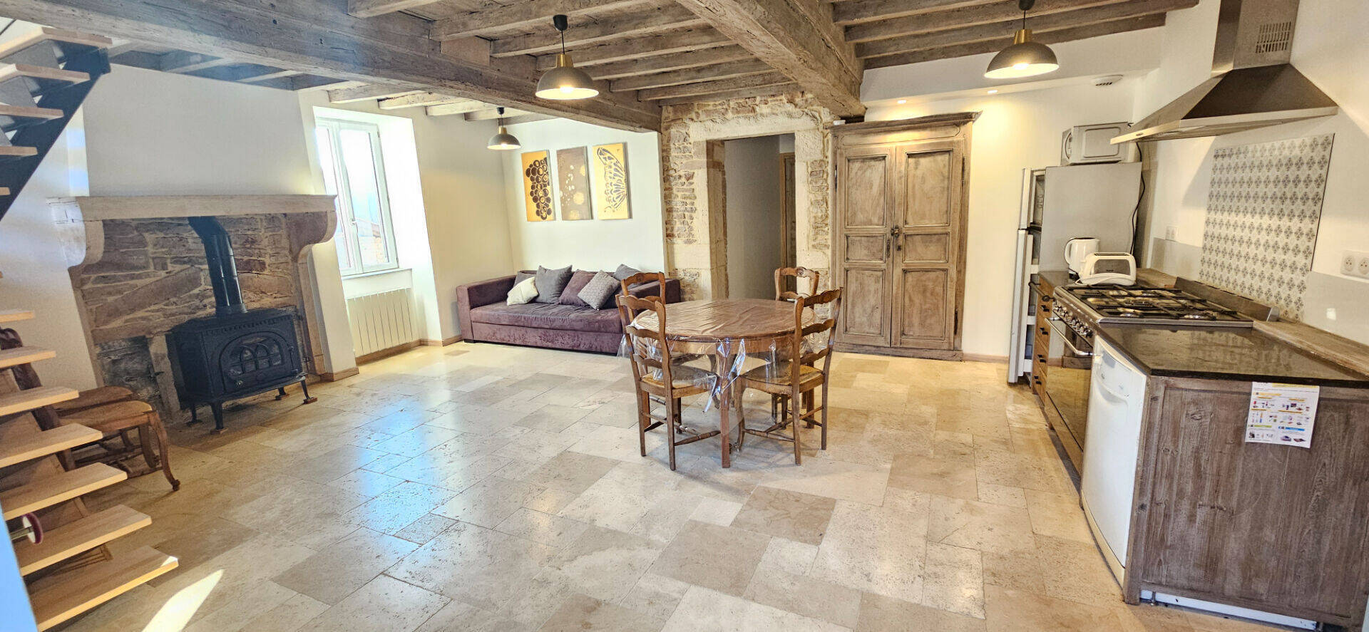 BURGY, au nord de Mâcon, secteur Viré/Péronne/Lugny - Rare et exceptionnel, A louer superbe maison mâconnaise entièrement meublée de type 4 avec dépendances et studio indépendant meublé. La maison se compose d'un séjour avec coin cuisine, d'une chambre et d'une salle d'eau avec wc. A l'étage : 2 chambres avec chacune leur salle d'eau et wc. Le studio est aménagé et équipé et dispose d'une salle d'eau avec wc - En annexes : cave, dépendances, cour, terrain de pétanque et coin pelouse - Classe Energie C - Classe Climat A - Chauffage individuel électrique et panneaux solaires photovoltaïques - Loyer : 1060.00 Euros - LIBRE DE SUITE - Charges locatives au réel : remboursement sur justificatifs (TEOM) - Honoraires charges locataire : 1345.05 Euros dont 384.30 Euros pour l'état des lieux - Dépôt de Garantie : 2120.00 Euros - CONTACT IMMO DE FRANCE Mâcon 03.85.39.21.20