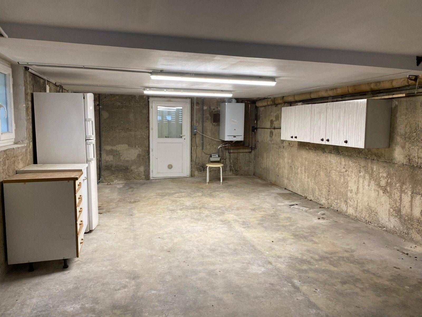- Au rez-de-chaussée : un dégagement, un garage, une cave, une grande pièce.