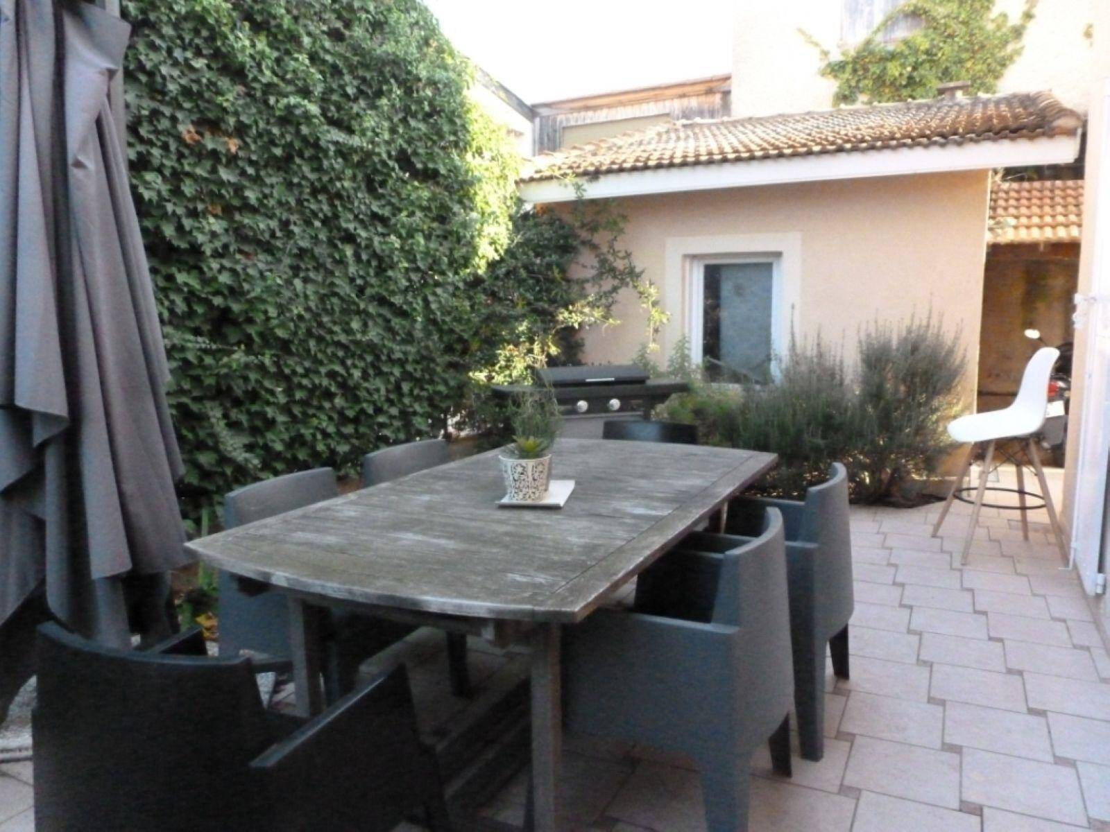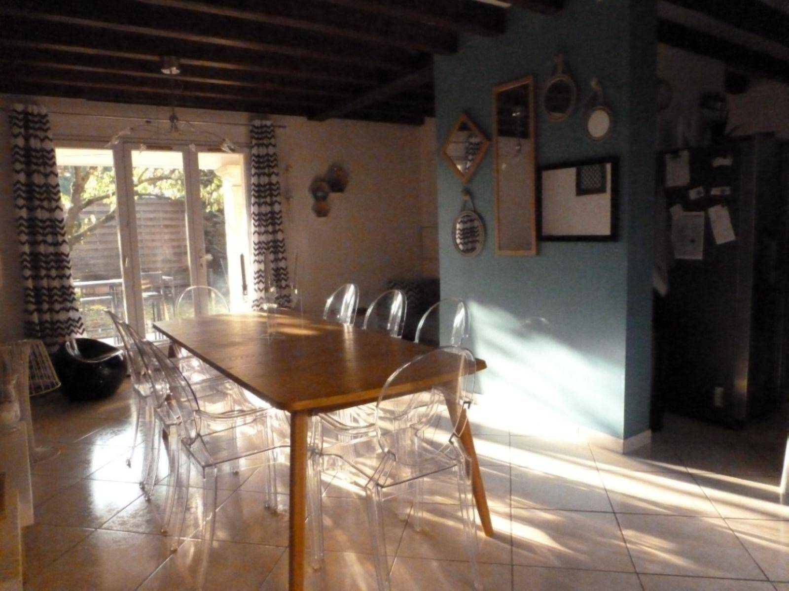 Un garage et un terrain clos et arboré de 700 m2 complètent la maison.