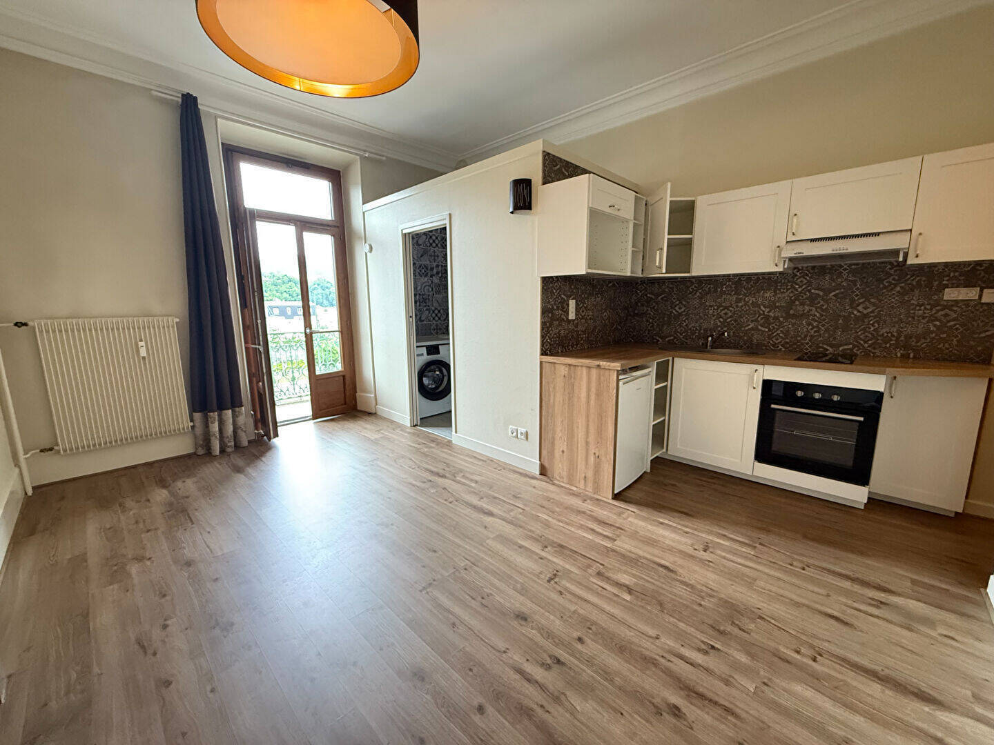 Centre ville AIX-LES-BAINS, un appartement de type 1 de 25 m² , loué actuellement à 596 euros/mois. Hall d'entrée avec placard, cuisine aménagée et équipée ouvert sur séjour, salle d'eau avec WC, balcon orienté plein Ouest. Place de parking libre dans la résidence.