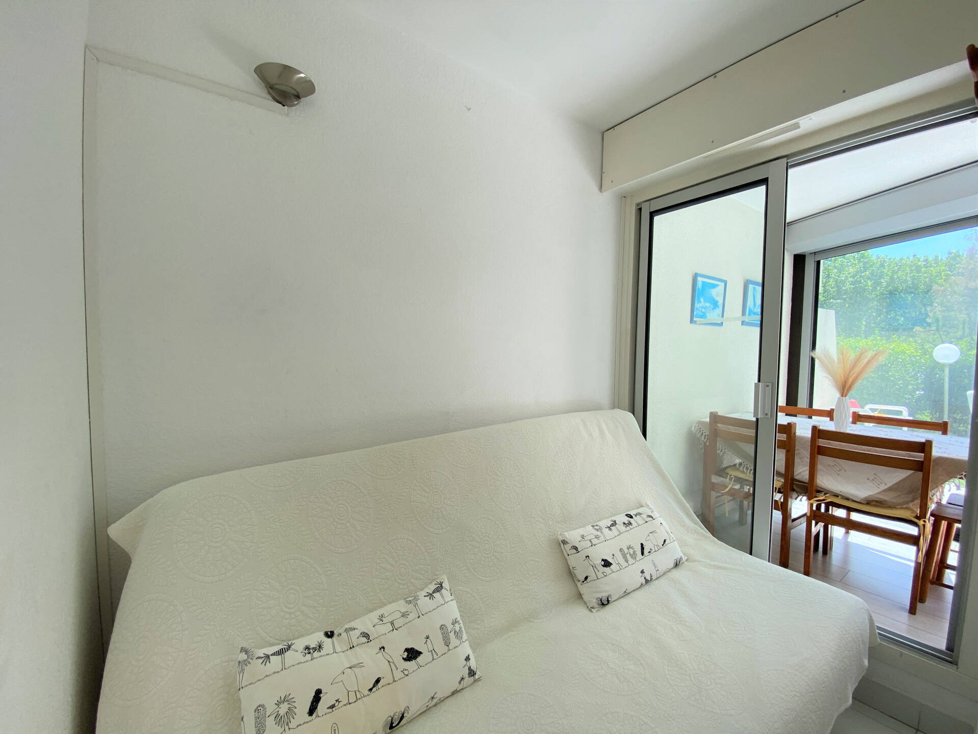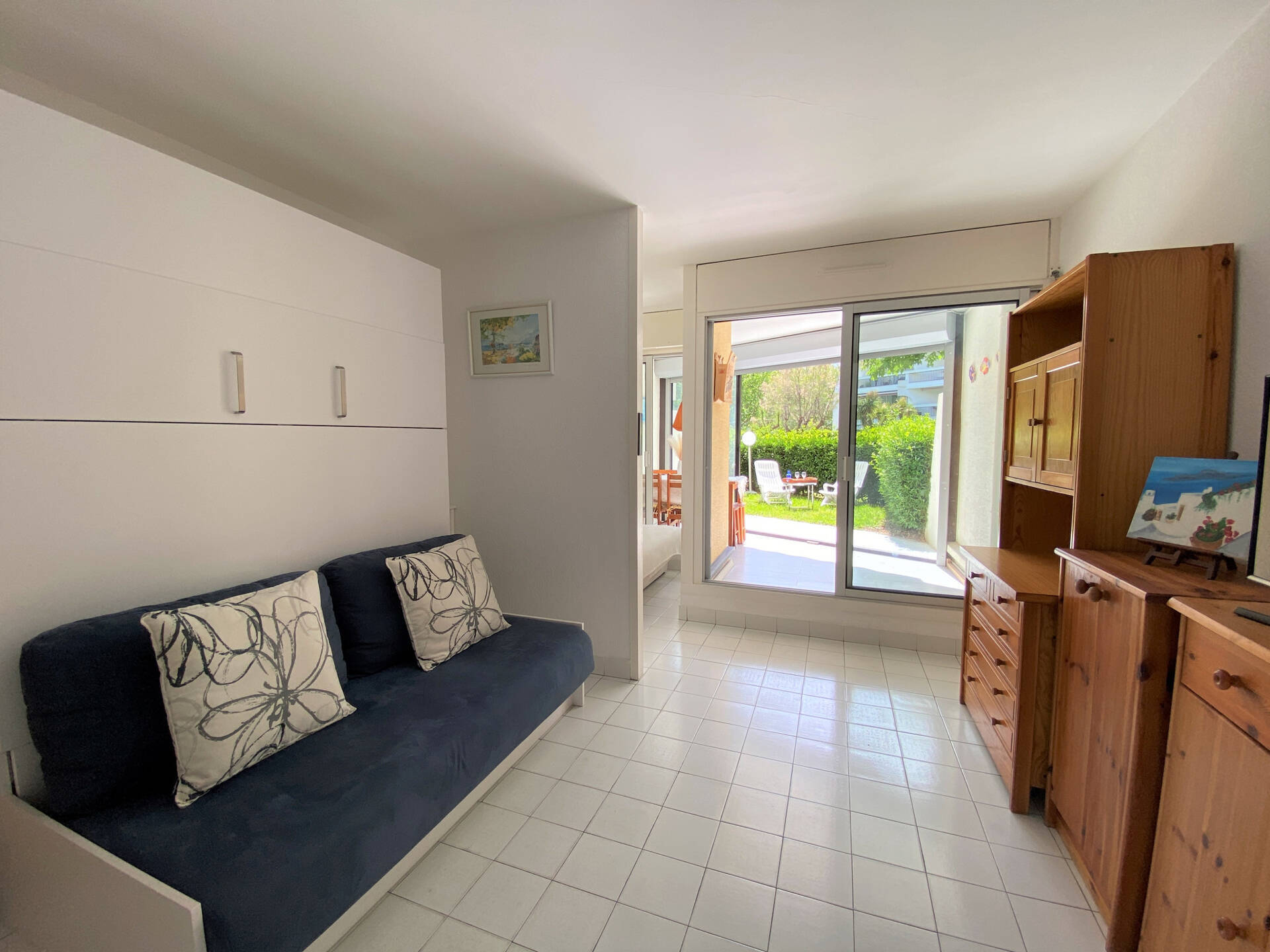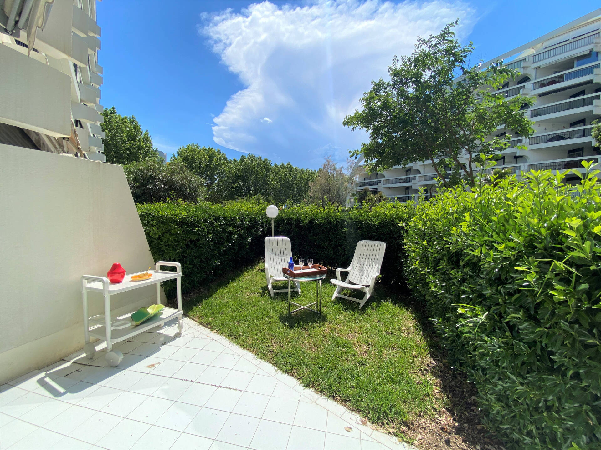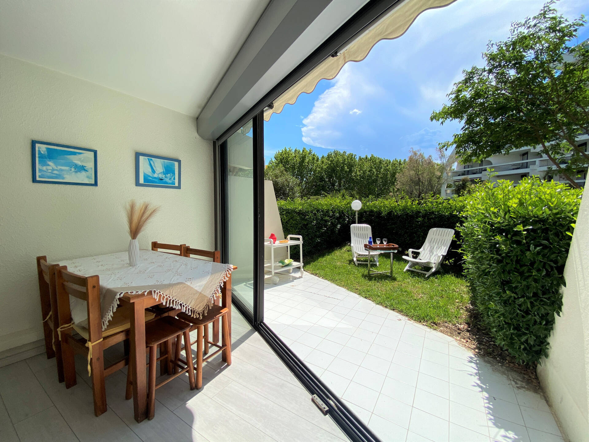 Idéalement situé en 2ème ligne, studio double cabine en rez-de-jardin de 25,69m2 carrez très lumineux. Composé d'une entrée avec cabine pour lits superposés, une salle d'eau, WC indépendants, cuisine équipée semi-ouverte sur la pièce à vivre, un cellier, une seconde cabine indépendante pouvant accueillir un lit double. Le tout prolongé par une loggia fermée de 8m2 et un jardin de 15m2 au sud ouest. En très bon état, cet appartement est tout comme un nid douillet dans un cadre verdoyant à deux pas de la plage. Une cave en sous-sol vient compléter les prestations de ce bien. Possibilité également d'acquérir un parking en sous-sol sécurisé en supplément. Les informations sur les risques auxquels ce bien est exposé sont disponibles sur le site Géorisques : www.georisques.gouv.fr. Contactez votre conseillère Katia TURKAN au O7 87 50 50 35.