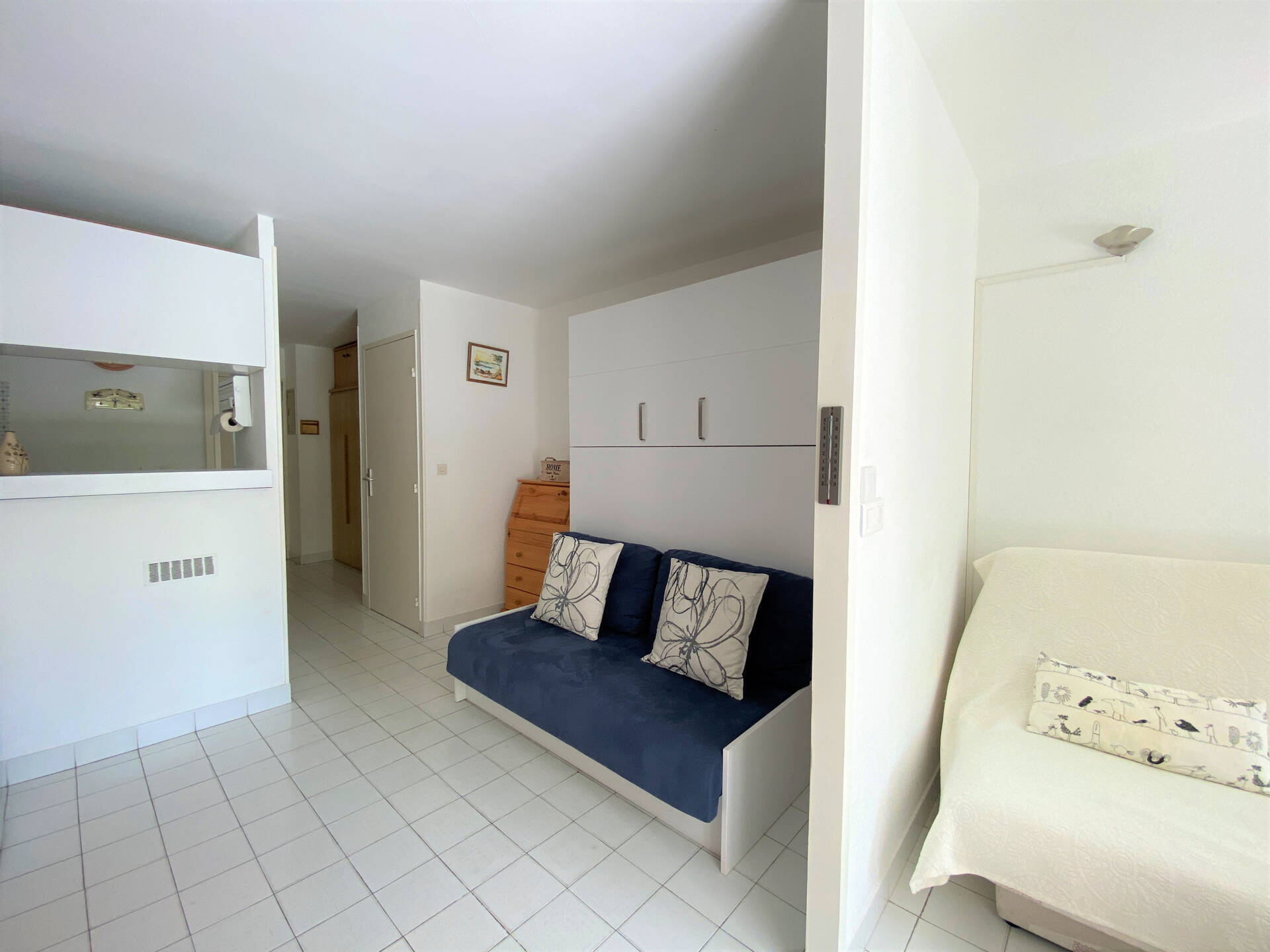 Idéalement situé en 2ème ligne, studio double cabine en rez-de-jardin de 25,69m2 carrez très lumineux. Composé d'une entrée avec cabine pour lits superposés, une salle d'eau, WC indépendants, cuisine équipée semi-ouverte sur la pièce à vivre, un cellier, une seconde cabine indépendante pouvant accueillir un lit double. Le tout prolongé par une loggia fermée de 8m2 et un jardin de 15m2 au sud ouest. En très bon état, cet appartement est tout comme un nid douillet dans un cadre verdoyant à deux pas de la plage. Une cave en sous-sol vient compléter les prestations de ce bien. Possibilité également d'acquérir un parking en sous-sol sécurisé en supplément. Les informations sur les risques auxquels ce bien est exposé sont disponibles sur le site Géorisques : www.georisques.gouv.fr. Contactez votre conseillère Katia TURKAN au O7 87 50 50 35.