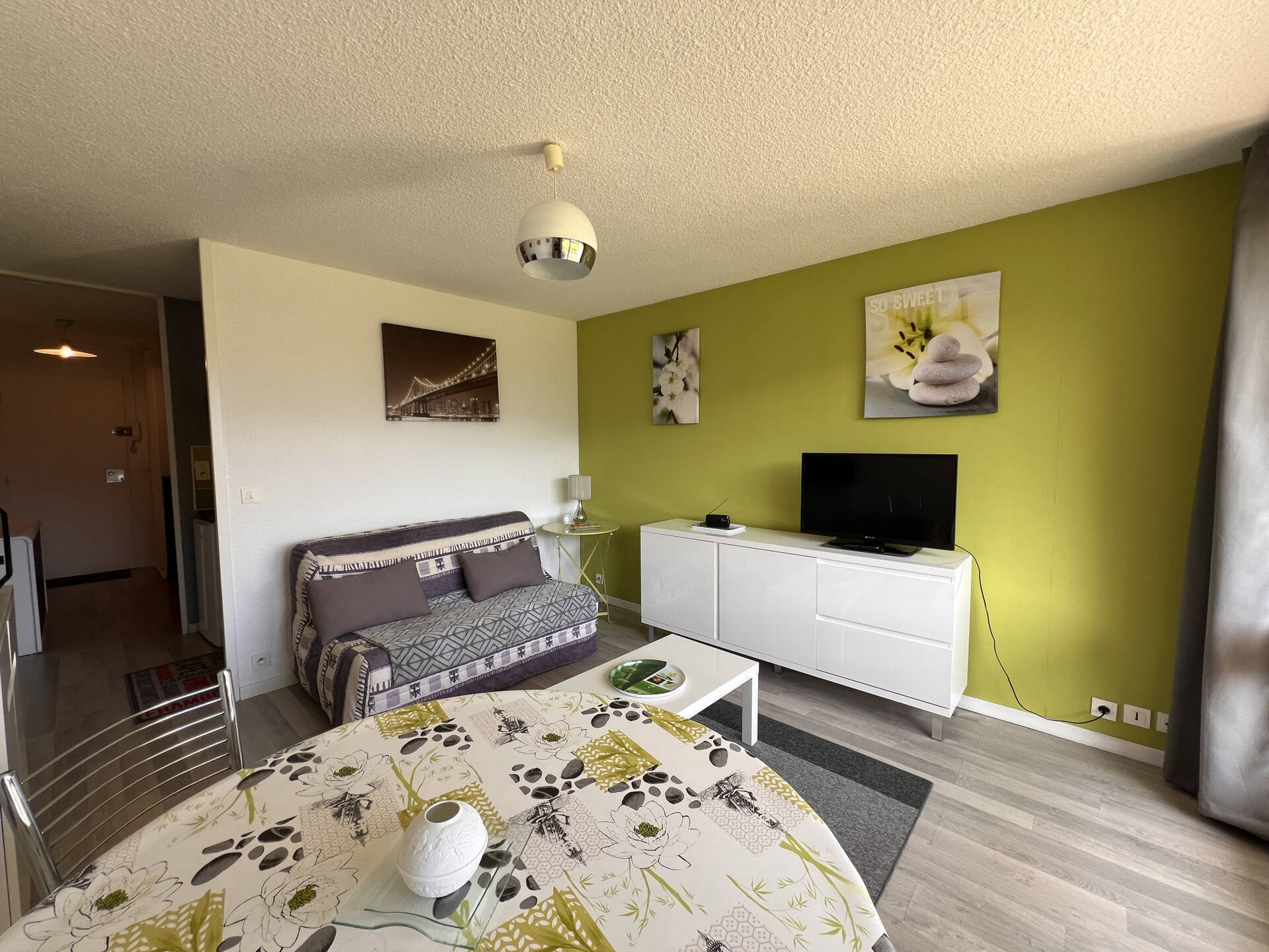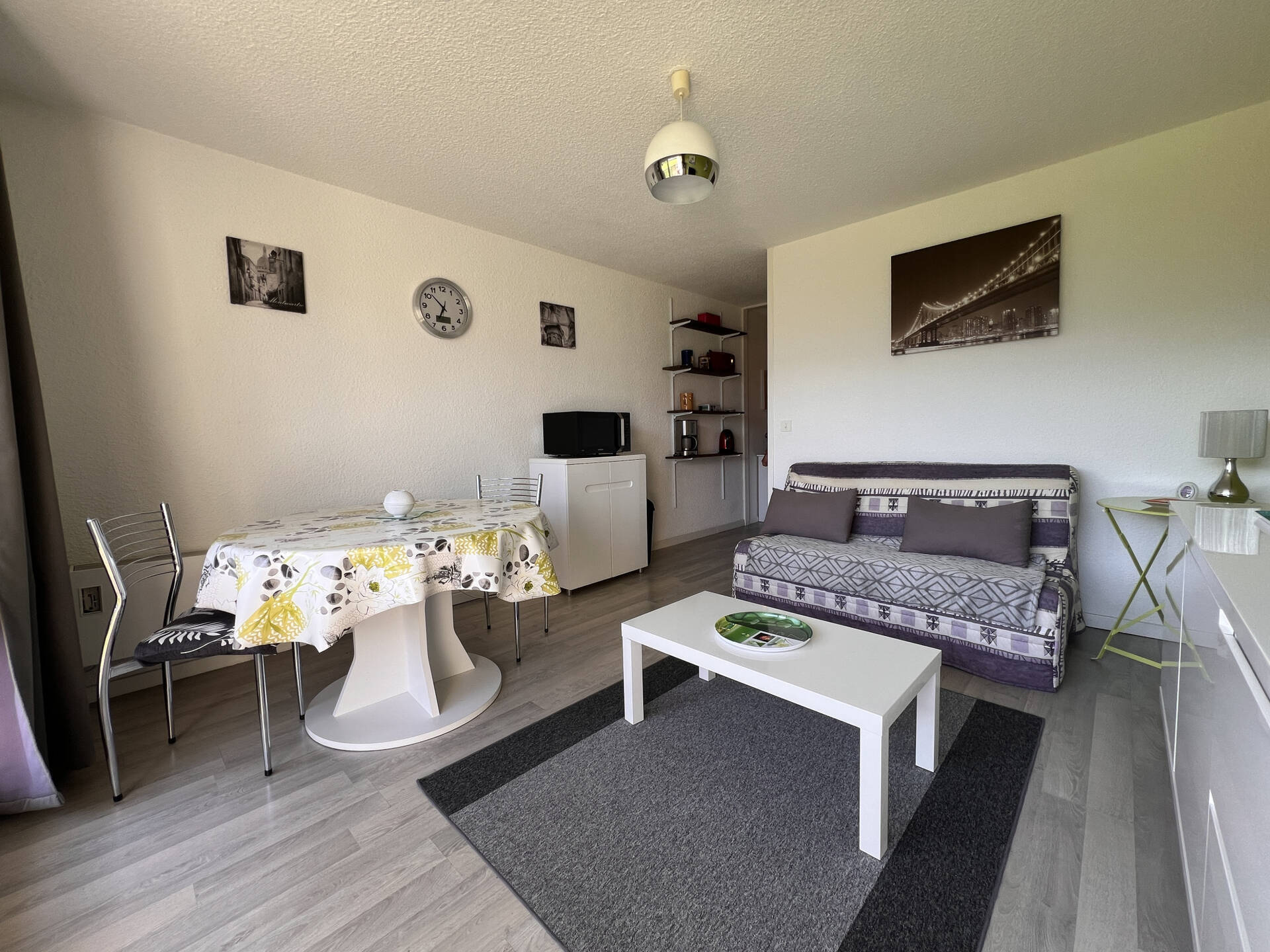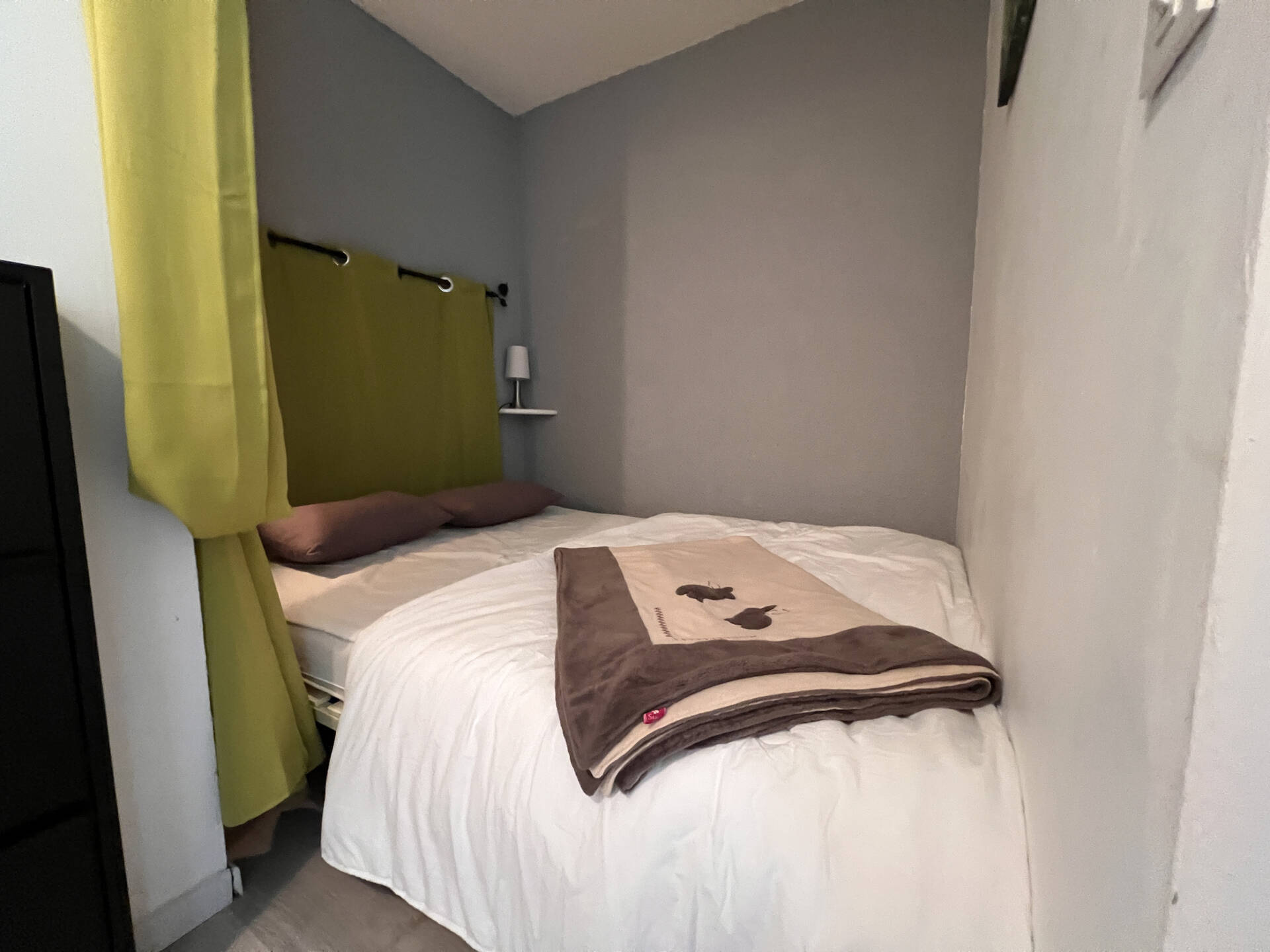 Il se compose d'une entrée avec placard, un coin nuit avec un lit pour 2 personnes, une salle d'eau refaite récemment, une kitchenette moderne et une salle de salon/séjour ouvrant sur un grand balcon sans vis à vis.