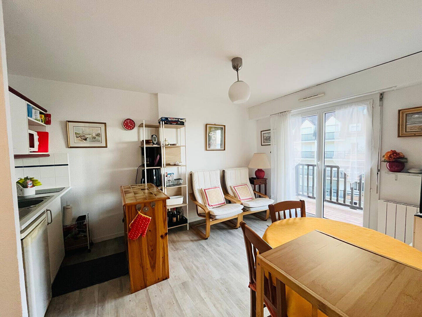 Appartement de deux pièces situé dans une résidence sécurisée avec accès direct à la plage. Situé au troisième étage, il bénéficie d'une vue mer depuis le balcon. Il se compose d'une entrée avec placard, une pièce de vie lumineuse avec coin kitchenette, une salle d'eau avec w-c, une chambre et un balcon exposé Ouest. Environnement calme et à proximité de tout à pied.