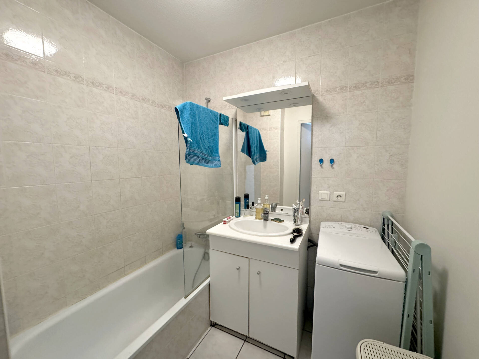 Une entrée avec placard, une cuisine semi-équipée ouverte partiellement sur le séjour avec accès sur sa terrasse exposition plein sud d'une surface de 17,23 m2, un wc, une salle de bains ainsi qu'une chambre avec placard intégré avec accès sur la terrasse.