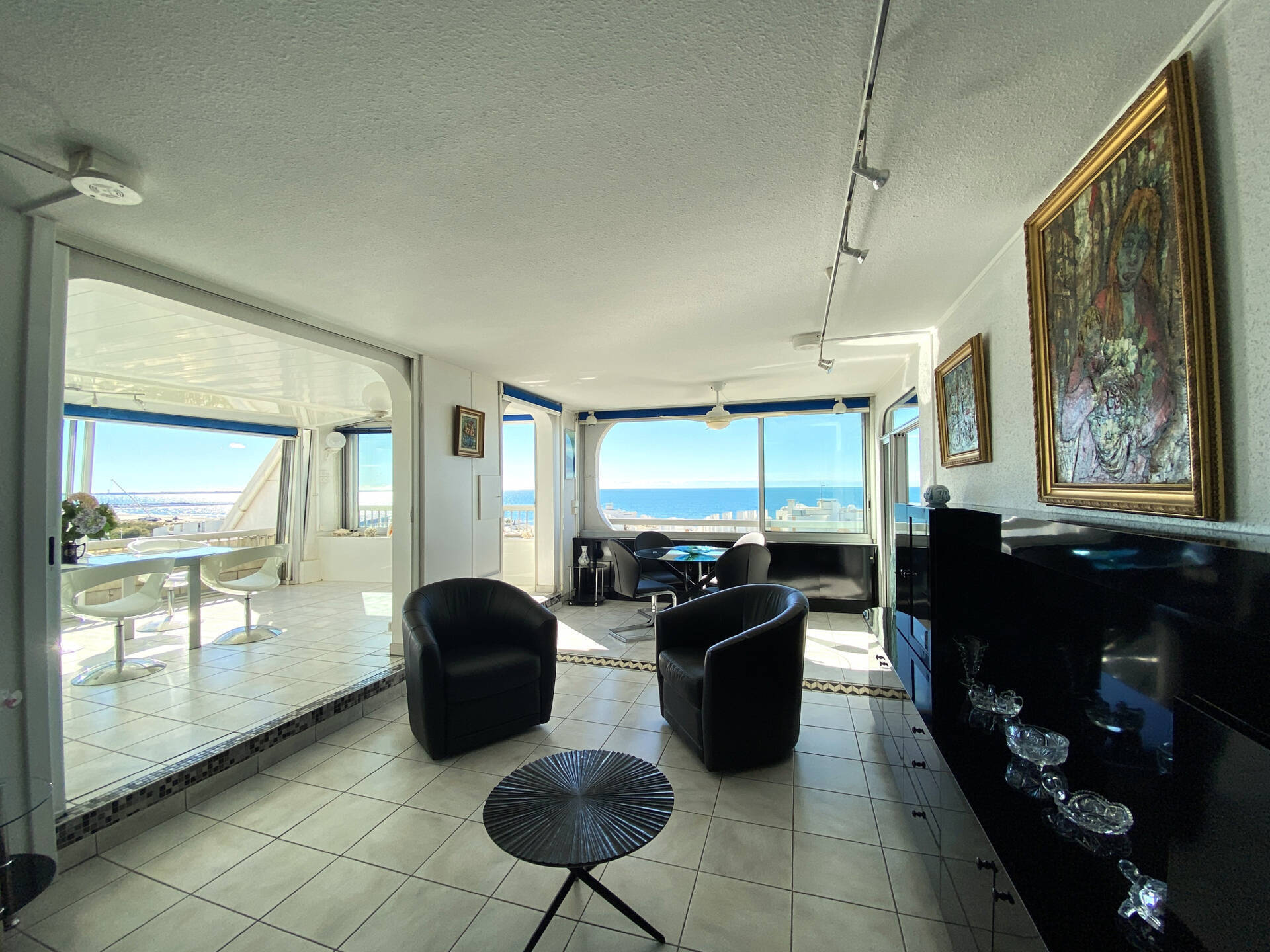Rare opportunité pour ce bien d'exception en deuxième ligne des plages du couchant. Niché au 7ème étage, cet appartement vous offre une vue splendide sur la mer et sur l'arrière pays. D'une surface Carrez de 48,65m2, il se compose de deux pièces très lumineuses, agrémentées de deux loggias : l'une d'une surface de 51m2 attenante au séjour ,vous offre ainsi une belle ouverture grâce aux baies à galandage, la seconde d'une surface de 9 m2 environ est intégrée à la chambre de 17 m2. Vous avez un accès séparé à la salle de bains et un WC indépendant Vous disposez de stores occultants à commande électrique pour chaque espace extérieur. Vous bénéficiez d'un garage de 17 m2 avec une porte automatisée au sous-sol accessible par ascenseur, également d'une place de stationnement aérien au sein de la copropriété. Les informations sur les risques auxquels ce bien est exposé sont disponibles sur le site Géorisques : www.georisques.gouv.fr. Contactez votre conseillère Muriel BELTRAME au O6 88 84 78 47
