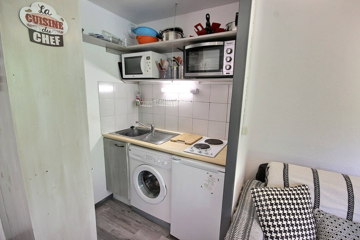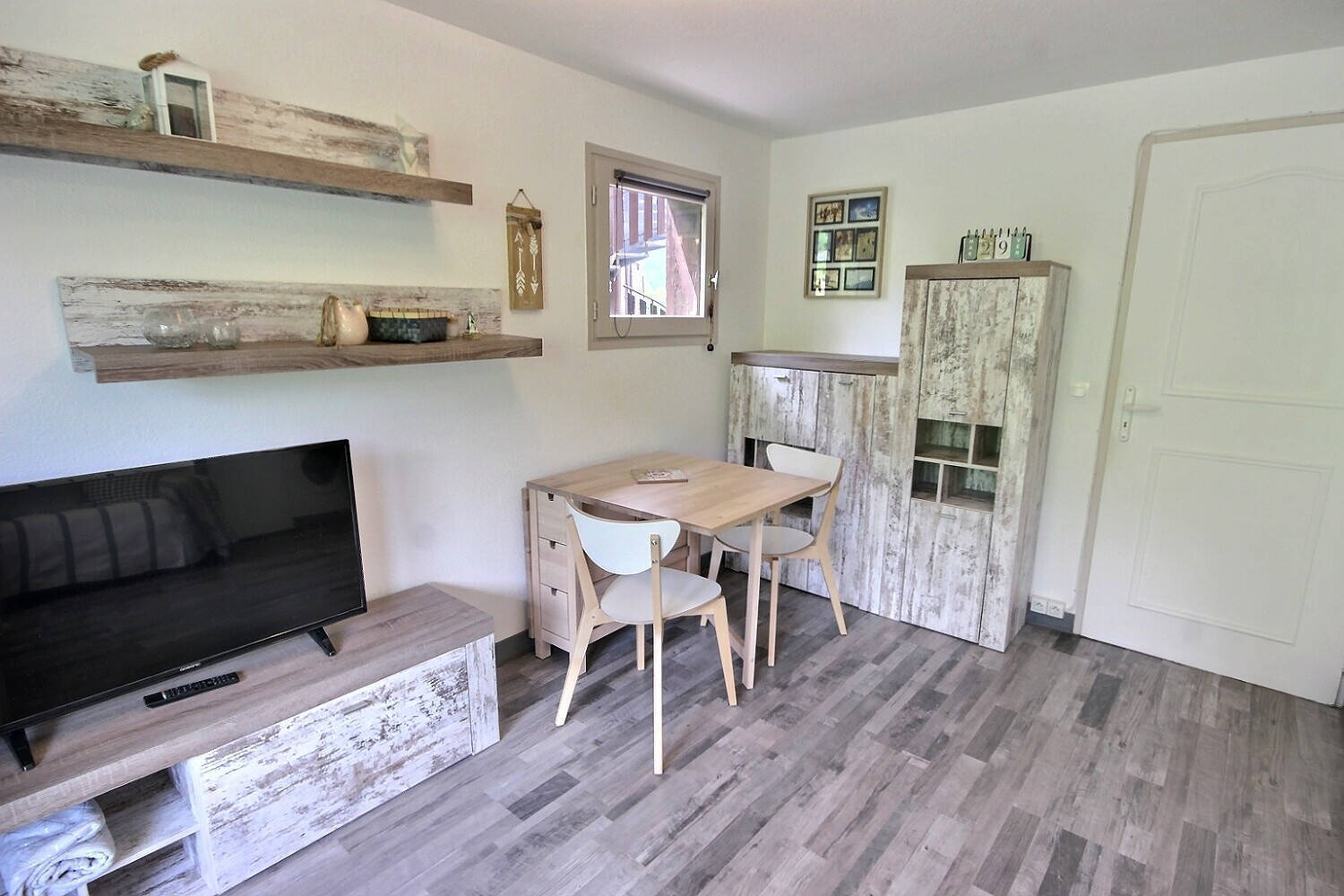 Ski aux pieds VALLANDRY Studio 24m² séjour double exposition Baie EST et fenêtre SUD. Meublé pour trois personnes. Balcon et casier à skis Possibilité de remeubler pour 4 personnes le coin montagne avec lits superposés à la place du dressing. Au centre de la station, tous commerces et navettes Visites sur RDV