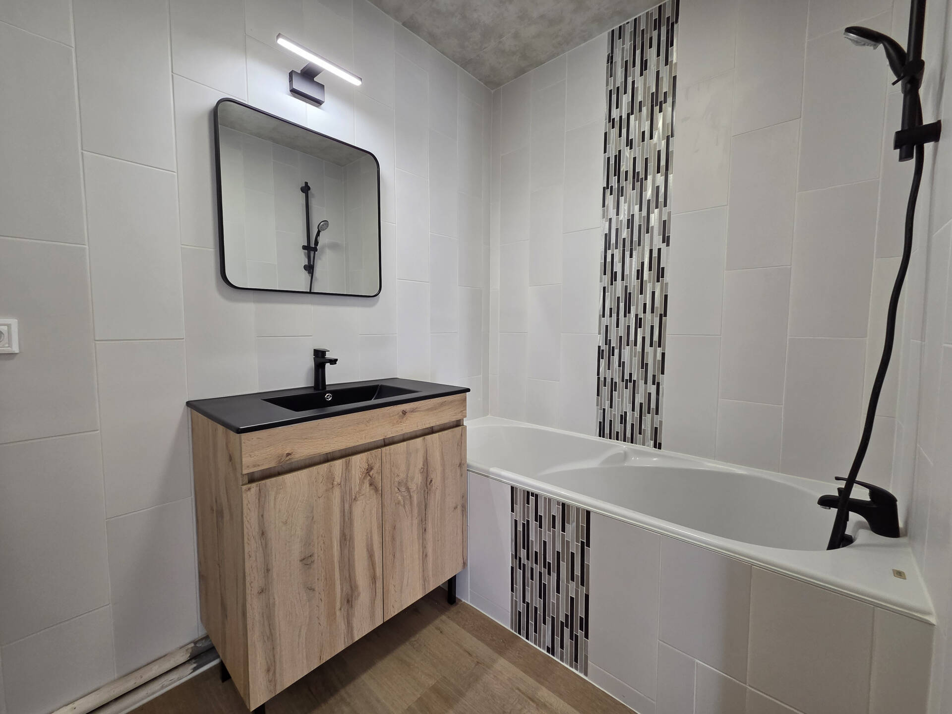 VILLE-LA-GRAND - Dans une résidence de bon standing de 2004 proche du centre-ville et ses commerces - Lumineux T2 entièrement rénové expo Sud-Est d'une surface loi Carrez de 55.74 m2 - Cet appartement se compose d'une entrée avec placard penderie, d'un Wc indépendant, d'une salle de bains, d'un beau séjour donnant accès au grand balcon, cuisine indépendante ouvrable sur le séjour pour faire une magnifique pièce ouverte, cellier, chauffage individuel gaz - Box garage en sous-sol et parking copro fermé par barrière - DPE : C