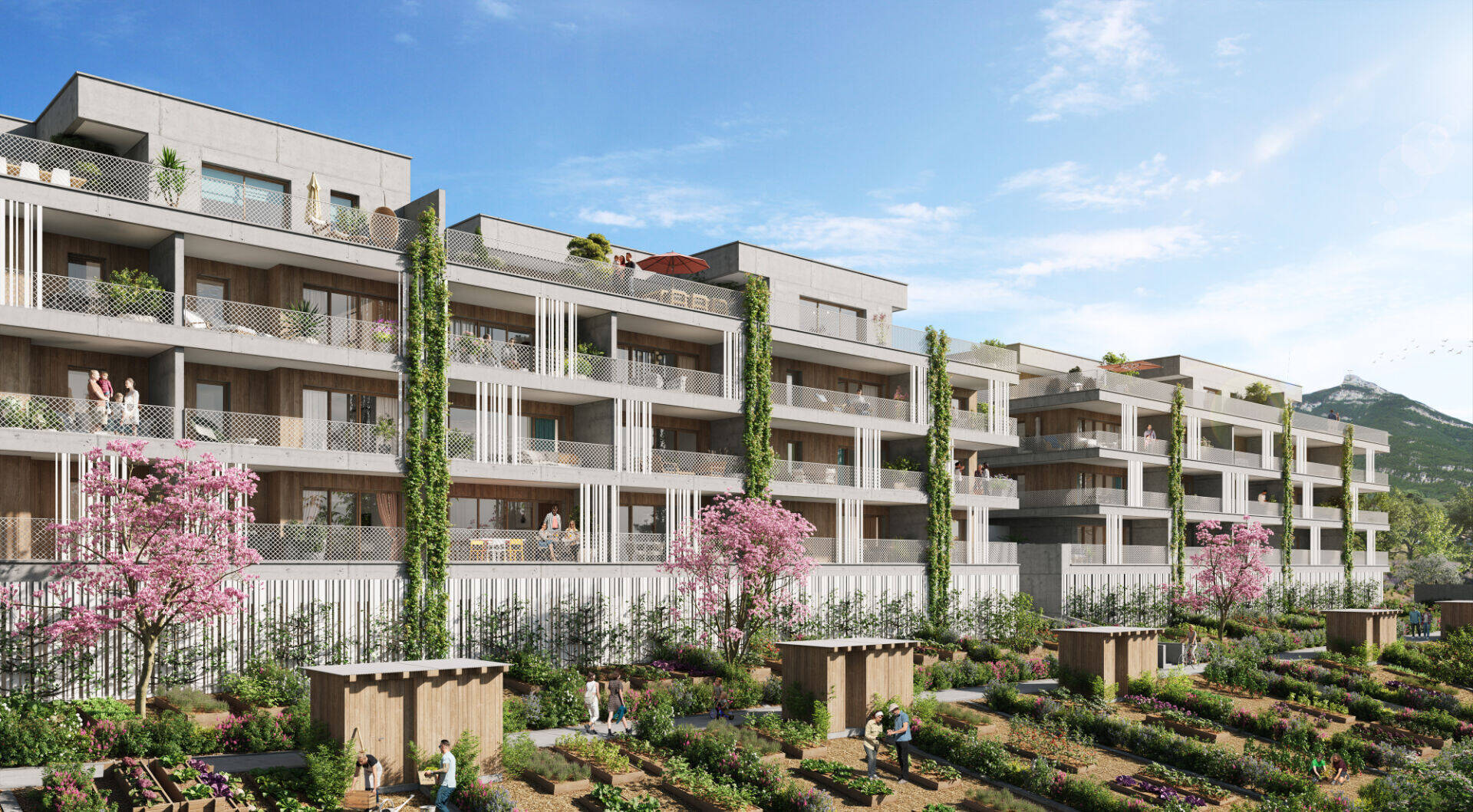 Venez profiter de la vue panoramique et imprenable sur les massifs environnants offerte à tous les logements, du T2 au T5, de 43 à 126m².