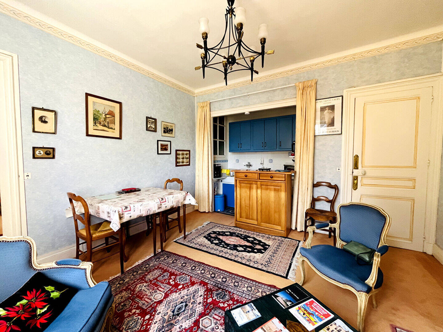 Sur la commune de Cabourg, en face du casino, à 50 mètres de la plage, dans l'éventail, grand appartement situé au premier étage d'une belle copropriété en colombage comprenant : une entrée avec placard, un wc séparé, un séjour-salon avec cuisine ouverte, deux grandes chambres et une salle de douche.