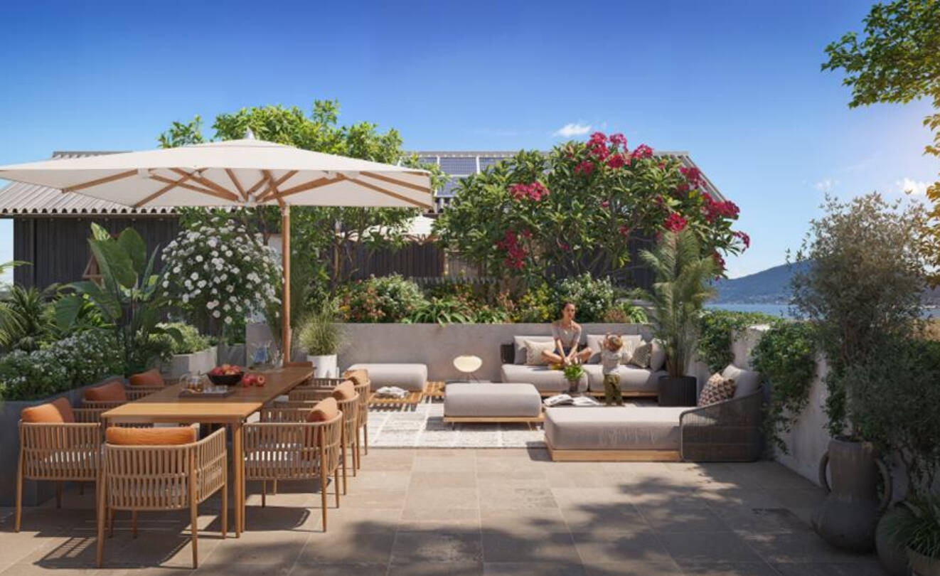 Au deuxième et dernier étage d'un petit bâtiment sans ascenseur, joli T3 bien distribué avec de beaux volumes, agrémenté d'une terrasse carrée de 30m². Jolie vue lac dégagée. Domotique, volets roulants électriques, chauffage au bois avec compteurs individuels.