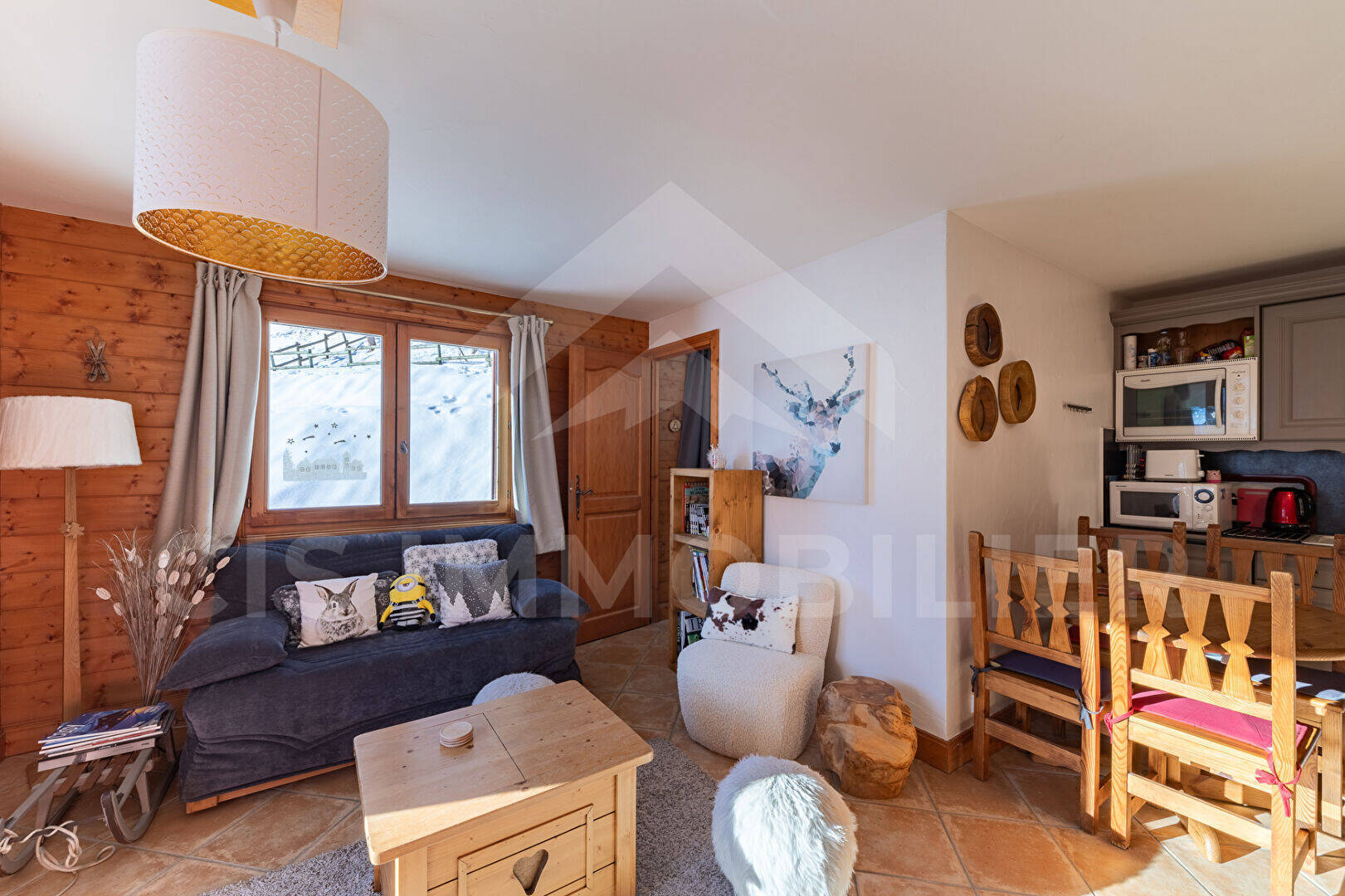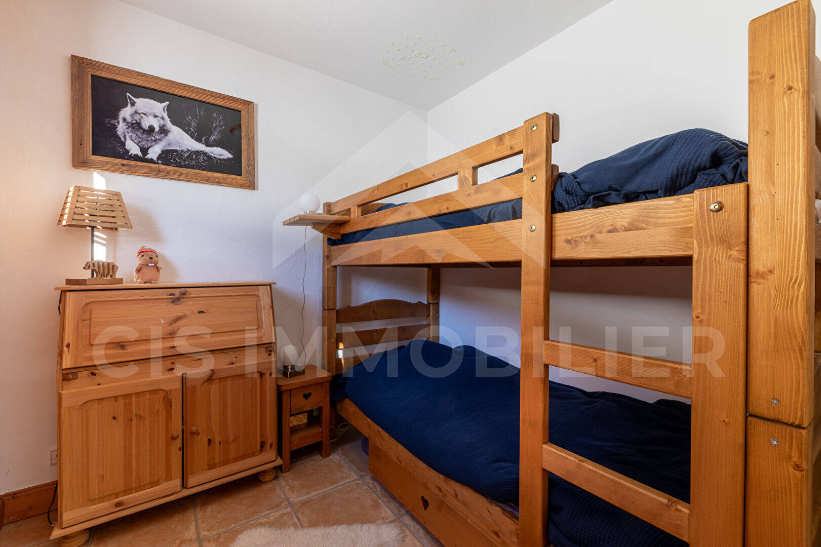 Exclusivité. Les Allues. Bel appartement d'angle très lumineux, bénéficiant d'une vue exceptionnelle et d'un très bon ensoleillement avec son exposition Sud et Ouest. Situé sur les hauteurs du village des Allues, il comprend 1 Séjour avec Cuisine ouverte équipée, 2 Chambres, 1 Salle de bains et 1 WC. Cave et Casier à skis. Parking couvert compris.