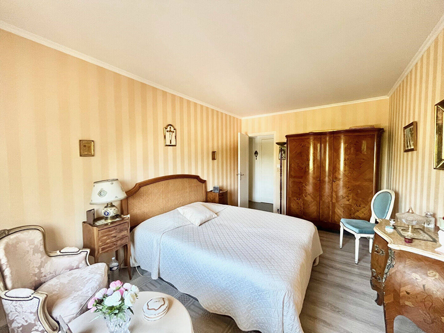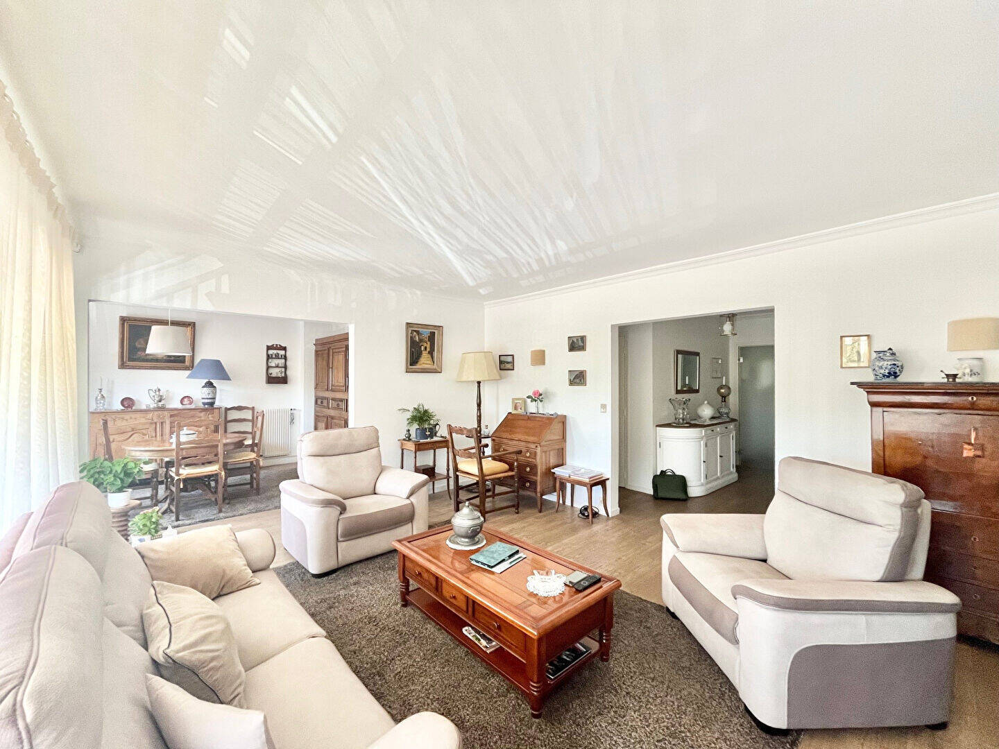 La grande entrée dessert harmonieusement toutes les pièces, offrant une circulation fluide dans le logement.