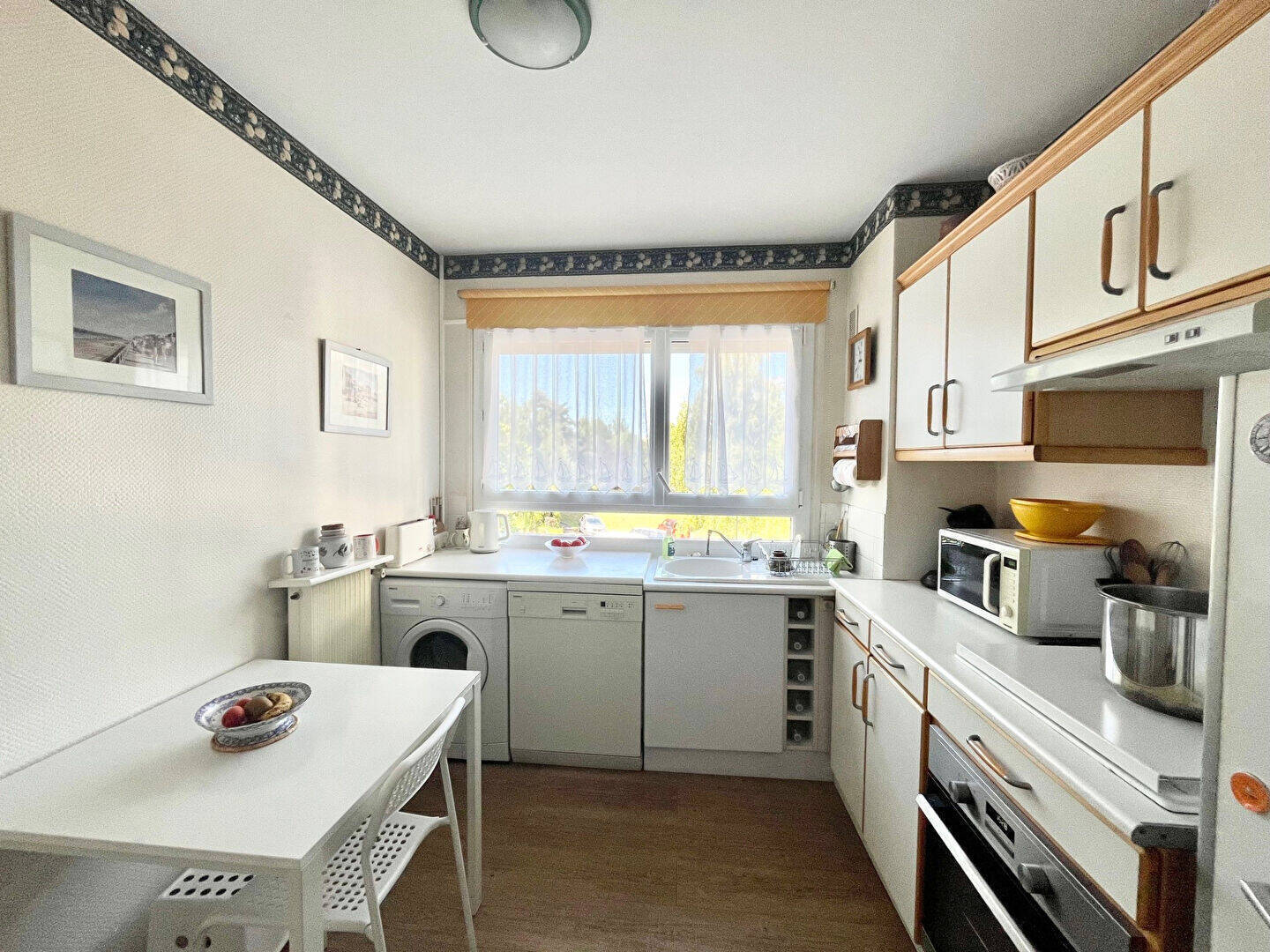 La cuisine est indépendante, la salle de bain fonctionnelle, et les WC sont séparés.