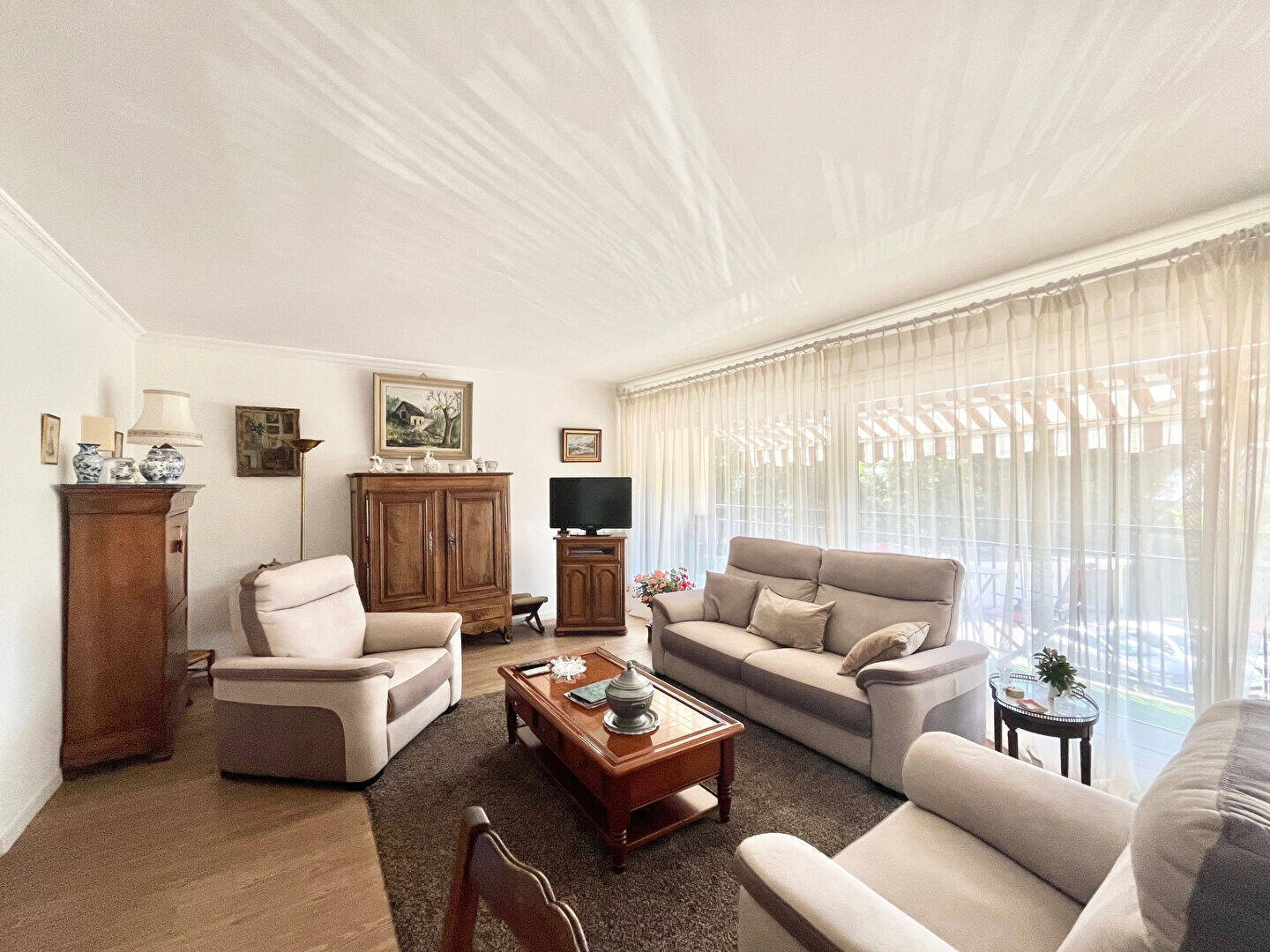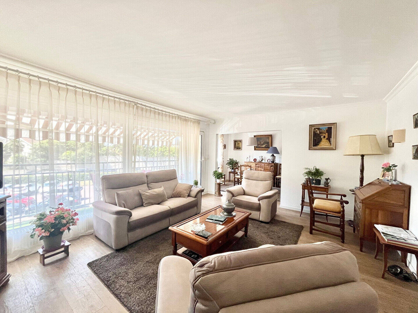 L'appartement est équipé de double vitrage PVC et aluminium blanc, de volets roulants électriques, et est vendu avec une cave et un stationnement.