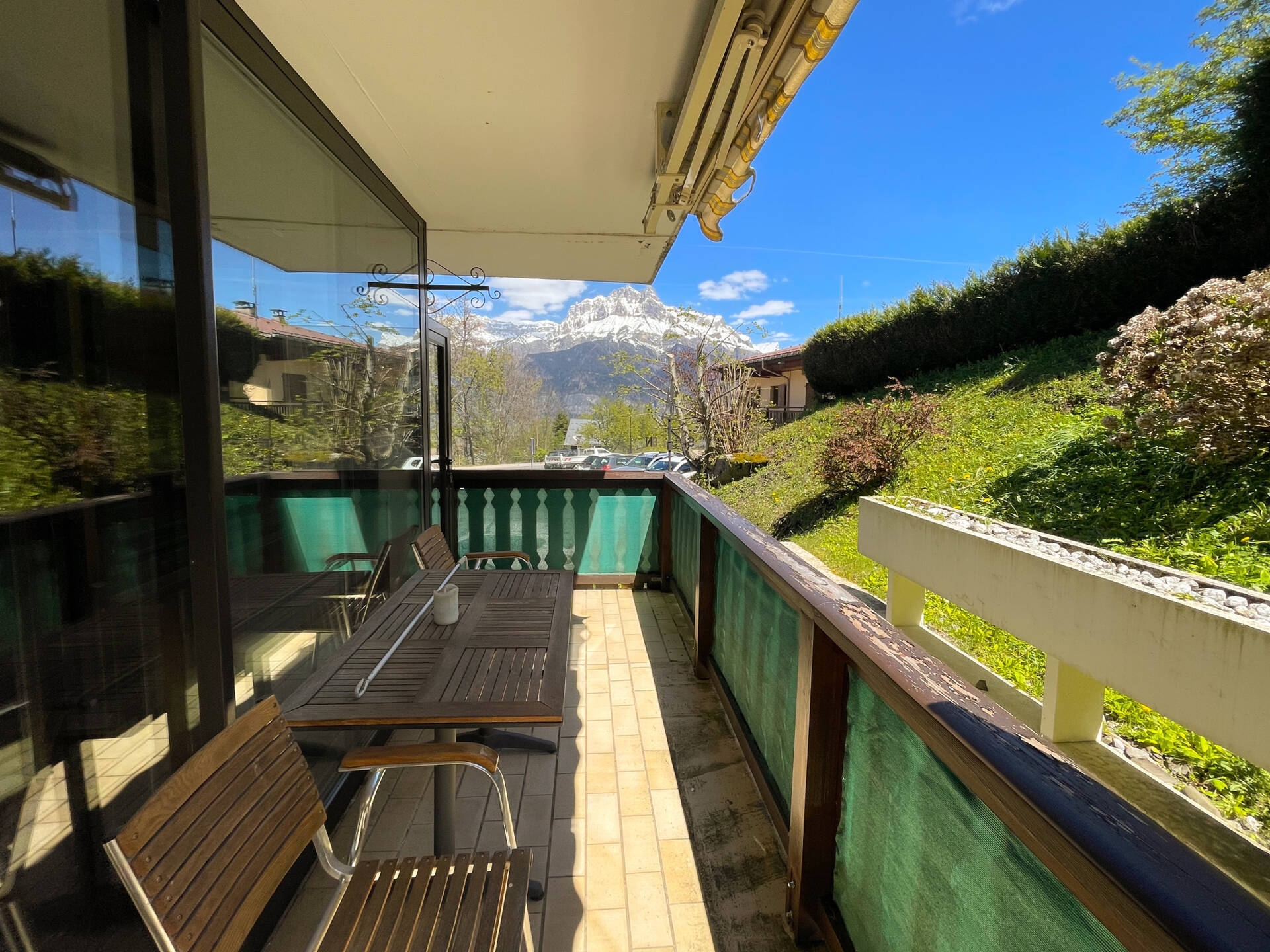Le logement est composé d'une grande entrée avec dégagement, un vaste séjour de plus de 28m2 avec cheminée et accès à un balcon en L donnant sur les Aiguilles de Warens, une cuisine séparée, 3 chambres avec placards dont une avec un second balcon sur Mont-Blanc et les Aravis, 2 salle de bains, et un wc séparé. Possibilité de transformer une salle de bains pour obtenir une 4ème chambre.