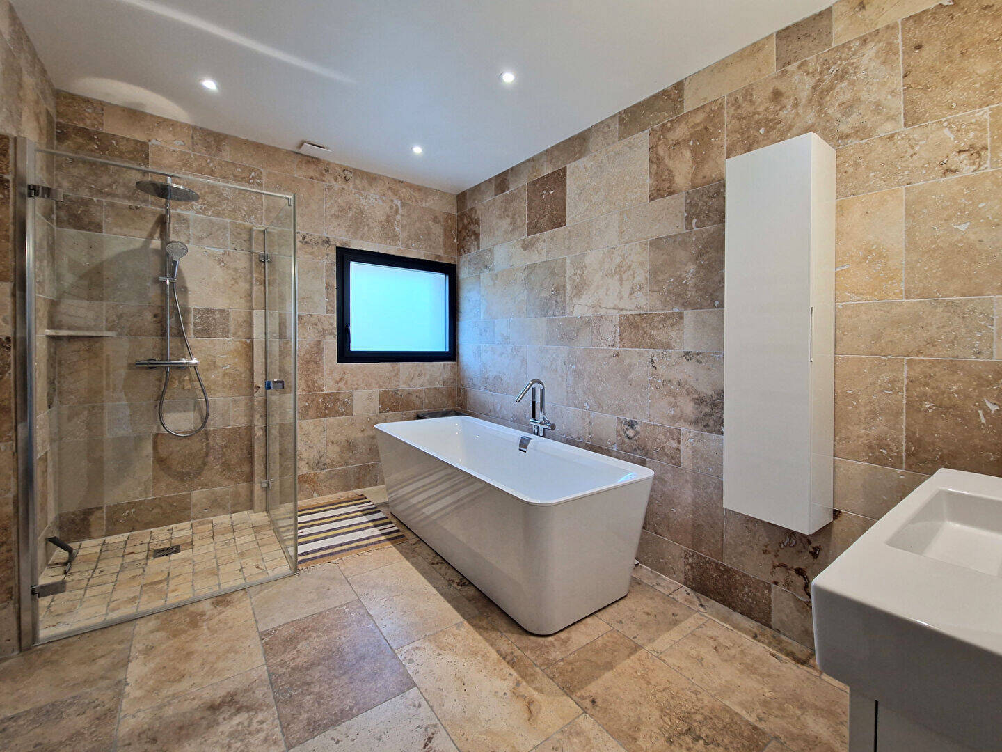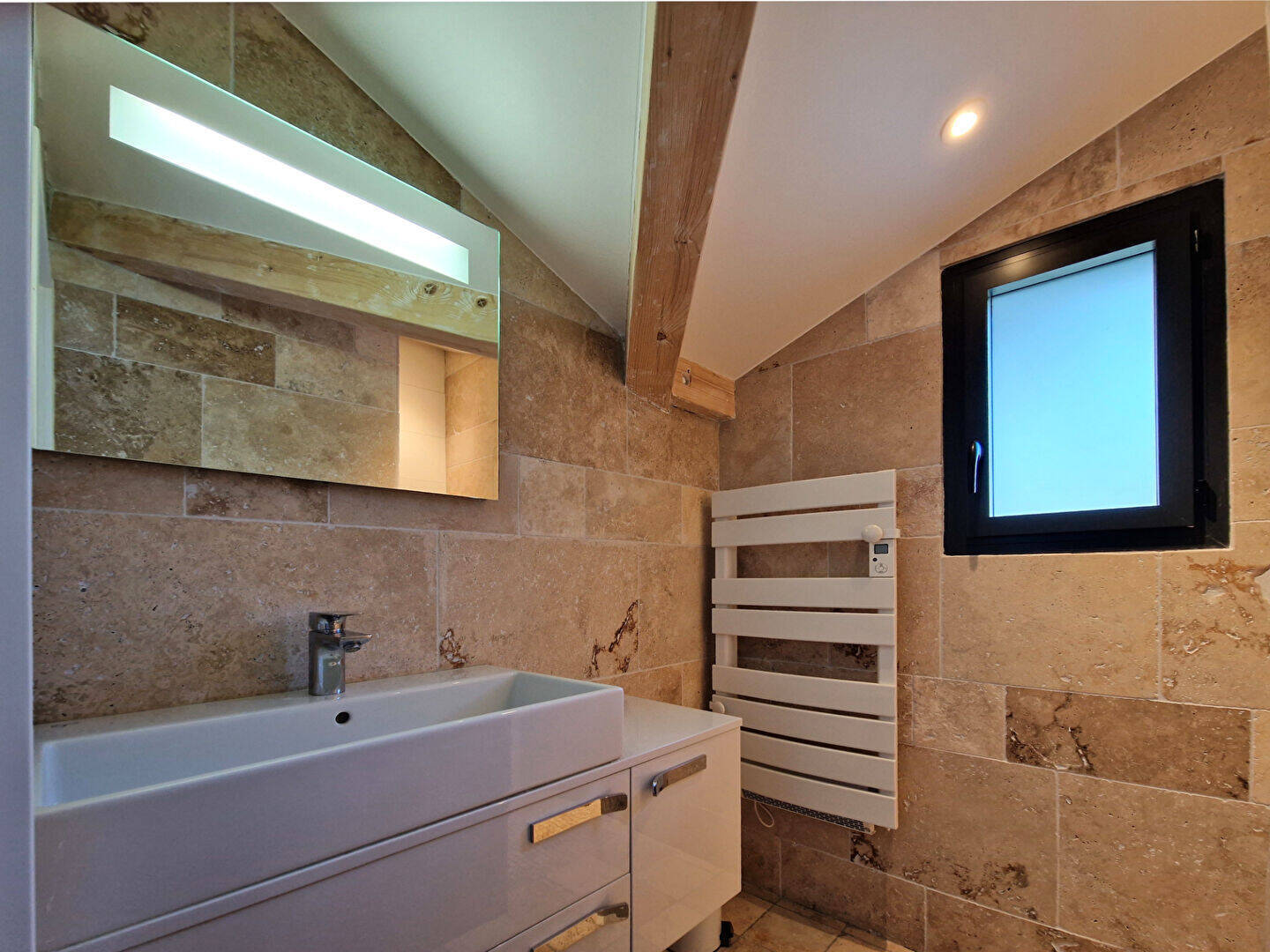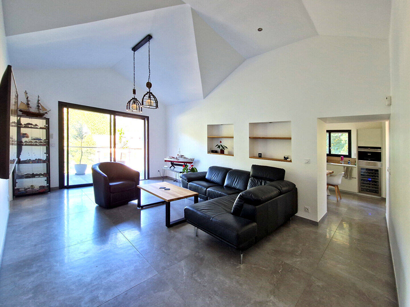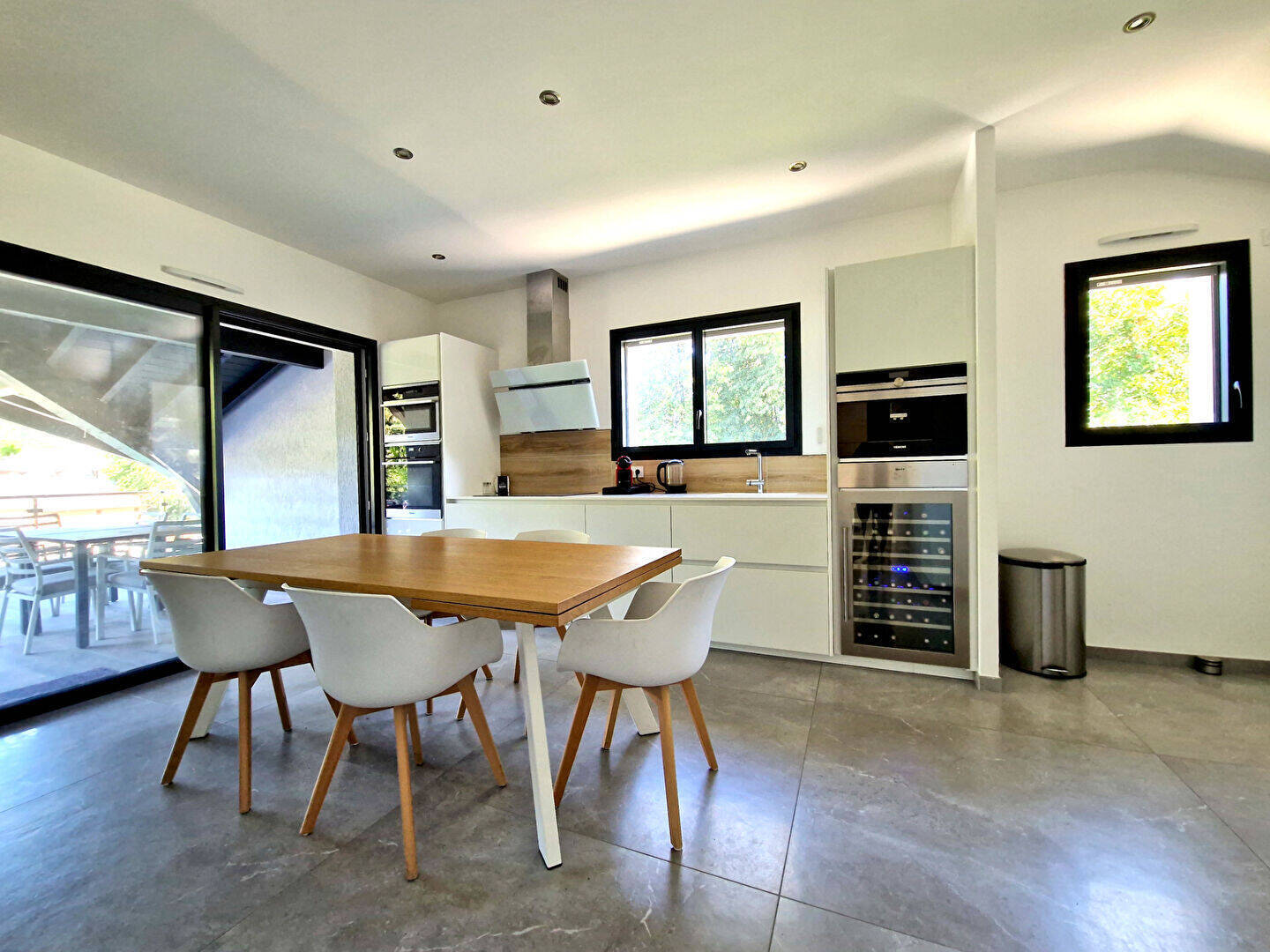 Une terrasse de 60 m² semi abritée orientée sud Ouest dans la continuité du salon et de la cuisine, un grand garage de 45 m et deux places de parking privées, complètent ce bien à découvrir.