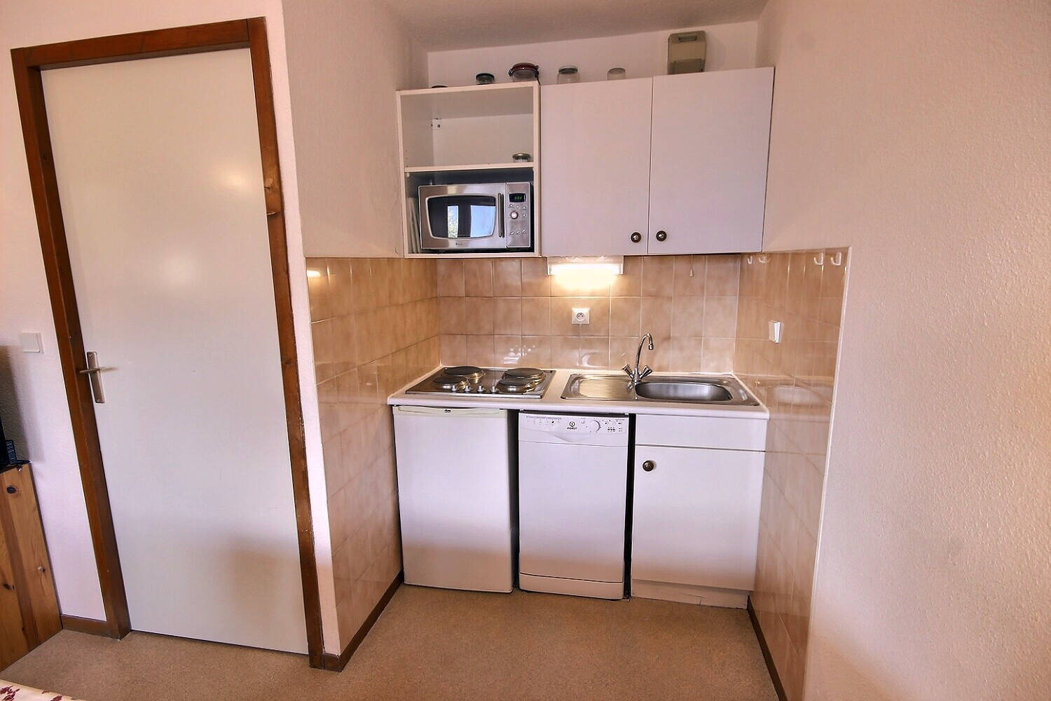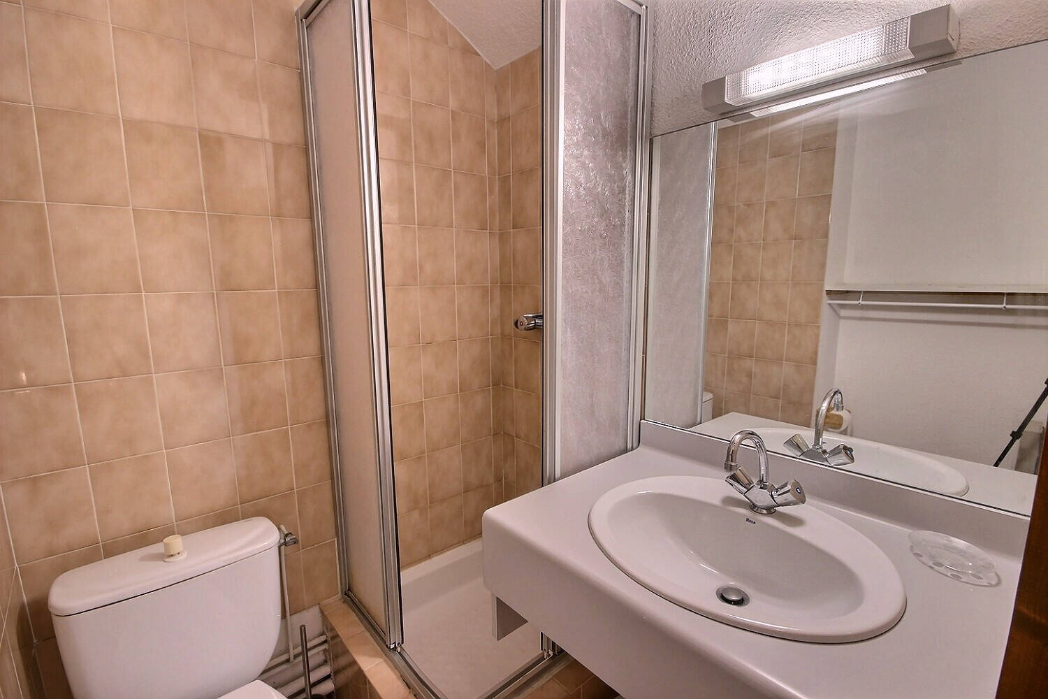 Sa surface de 61 m² habitables, 43 m² loi carrez. Le séjour est agréable, vitré plein Sud donnant sur le balcon bénéficiant d'une vue dégagée. L'espace kitchenette est une vraie cuisine aménagée et équipée avec un espace salle à manger. L'appartement est équipée de plusieurs armoires et placards. Un wc par étage, deux salles de douche. L'espace couchages est composé d'une chambre au rdc et deux autres chambres sont à l'étage mansardées avec un velux.