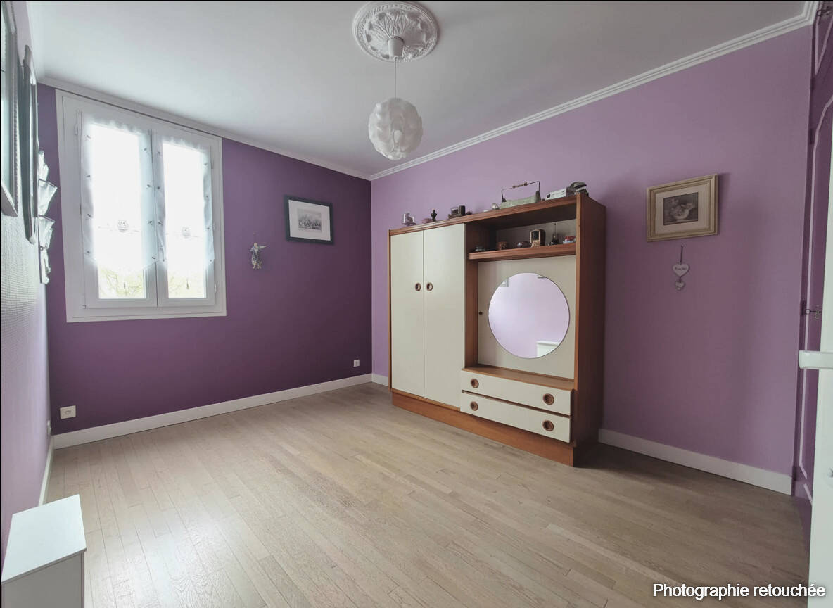 Le dégagement mène à un espace nuit comprenant trois chambres sur parquet ancien et une salle de bains mixte, avec douche et baignoire.
