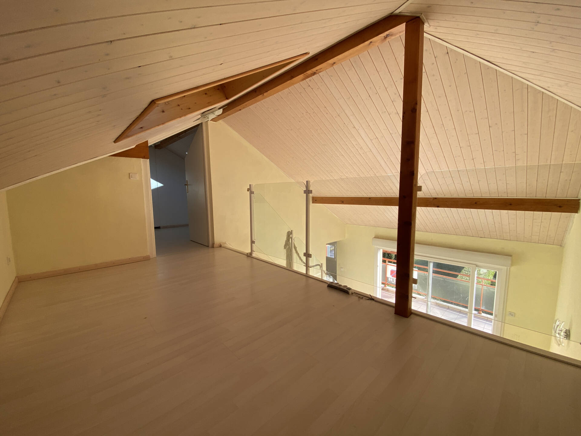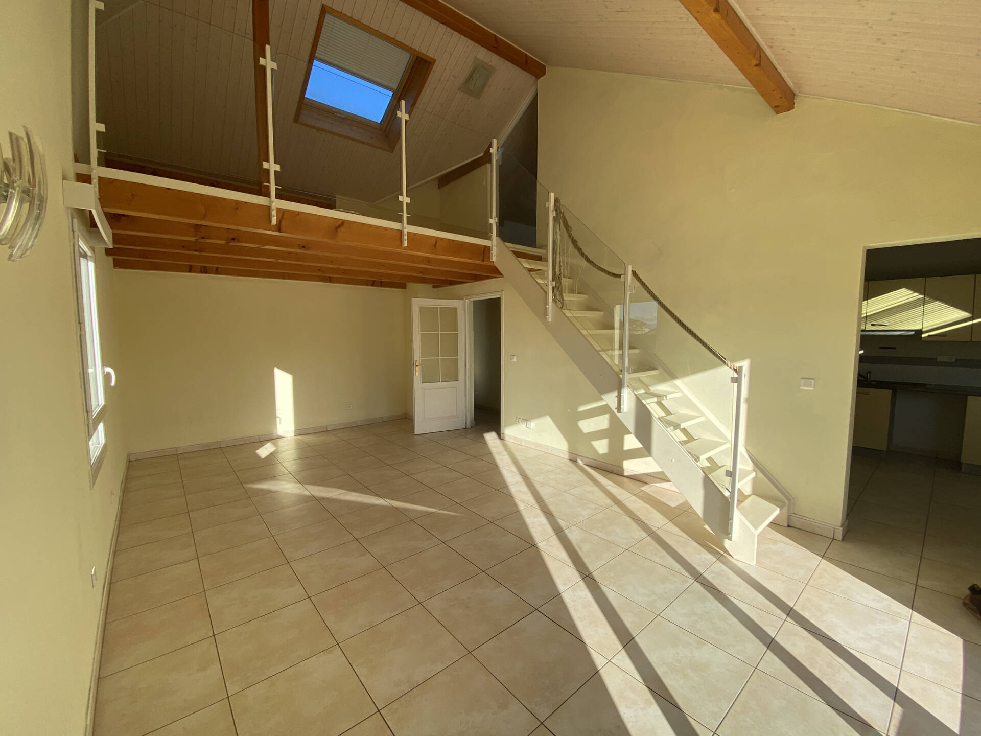 4807 vous propose en EXCLUSIVITE , un appartement de type T4 situé au 2è et dernier étage d’une copropriété bien entretenue, à proximité immédiate du centre-ville de Reignier, offre un cadre de vie agréable et lumineux. Dès l’entrée, équipée d’un placard de rangement, vous accédez à l’espace de vie composé d’une belle pièce principale exposée plein sud, avec une cuisine semi-ouverte et semi-équipée. Cet espace convivial s’ouvre directement sur une terrasse, idéale pour profiter des beaux jours. Le salon dispose également d’une mezzanine ouverte, menant à une petite chambre aménagée dans les combles, apportant charme et fonctionnalité à l’ensemble. Cet appartement dispose également d'une salle de bain et de deux chambres (dont une avec douche privative). Une cave et une place de parking exterieur complètent ce bien. Possibilité d'un garage en sus.
