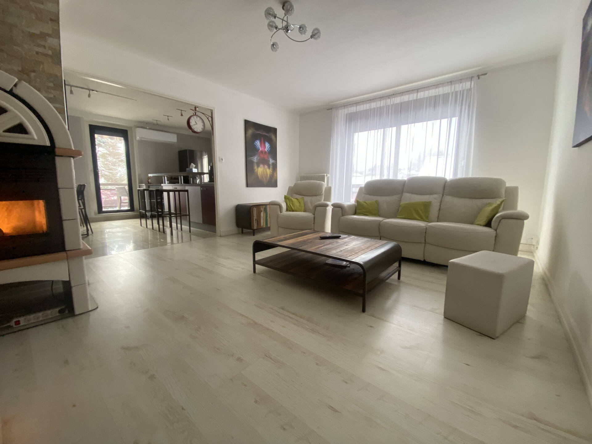 À l’intérieur, une cuisine équipée ouverte sur la salle à manger s’harmonise parfaitement avec un salon chaleureux, créant un bel espace de vie convivial. L’appartement propose également 3 grandes chambres avec placards intégrés et un bureau de 7 m2, idéal pour le télétravail.