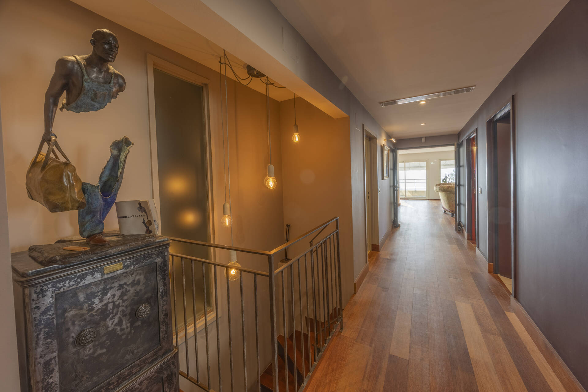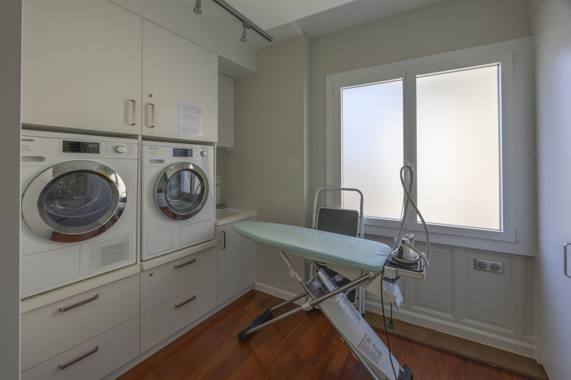 The apartment, with a living area of 230 m2 (totaling 287 m2), has been designed to provide a flexible living space, catering to the most demanding expectations. Currently composed of three separate units—one main apartment and two independent studios—it can easily be converted into a single, magnificent residence with simple partition adjustments. Each bedroom has been designed as a haven of tranquility, featuring its own en-suite bathroom, private toilet, and custom dressing room, ensuring absolute privacy.