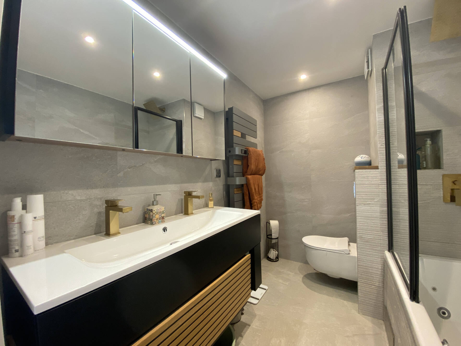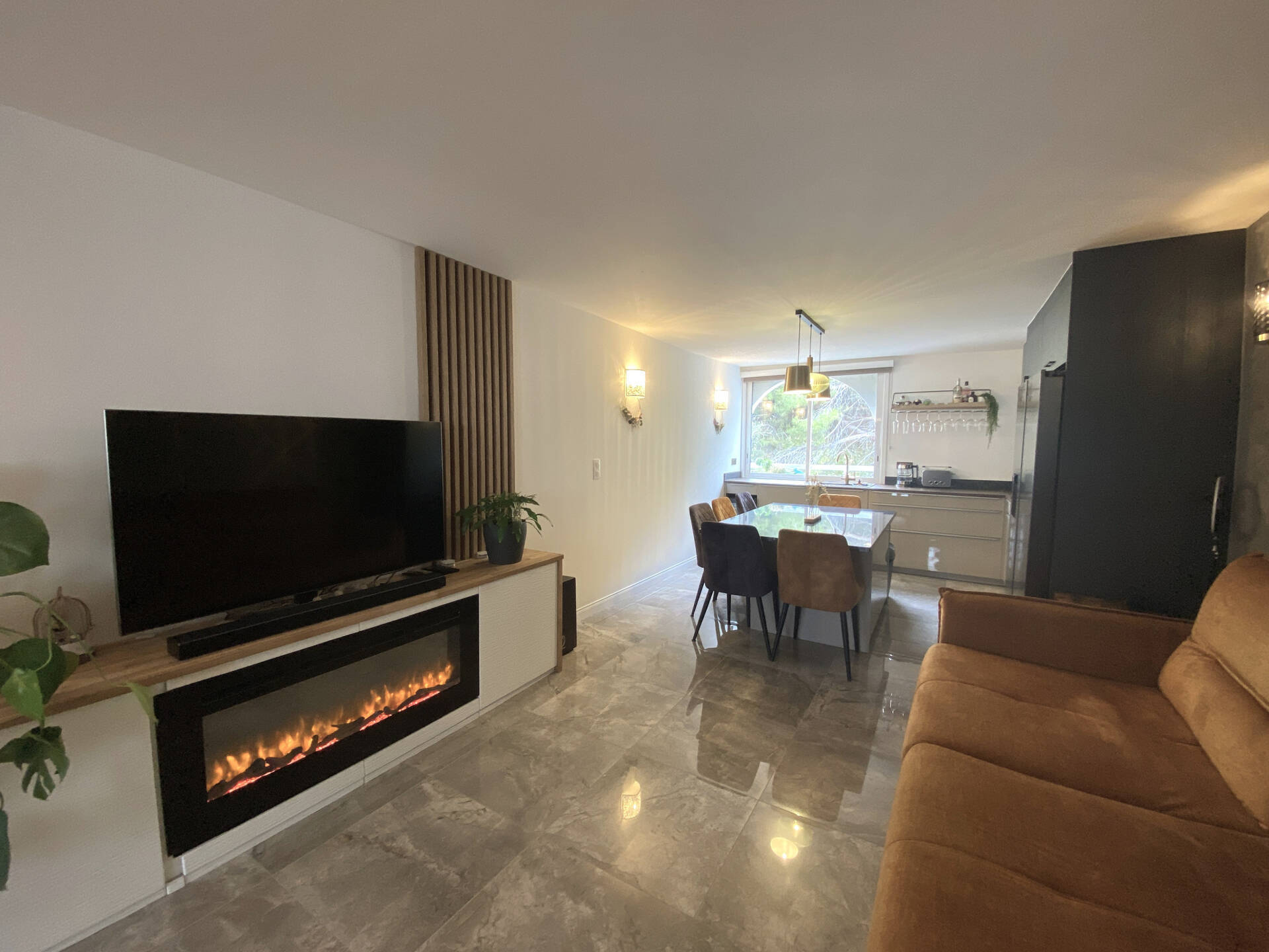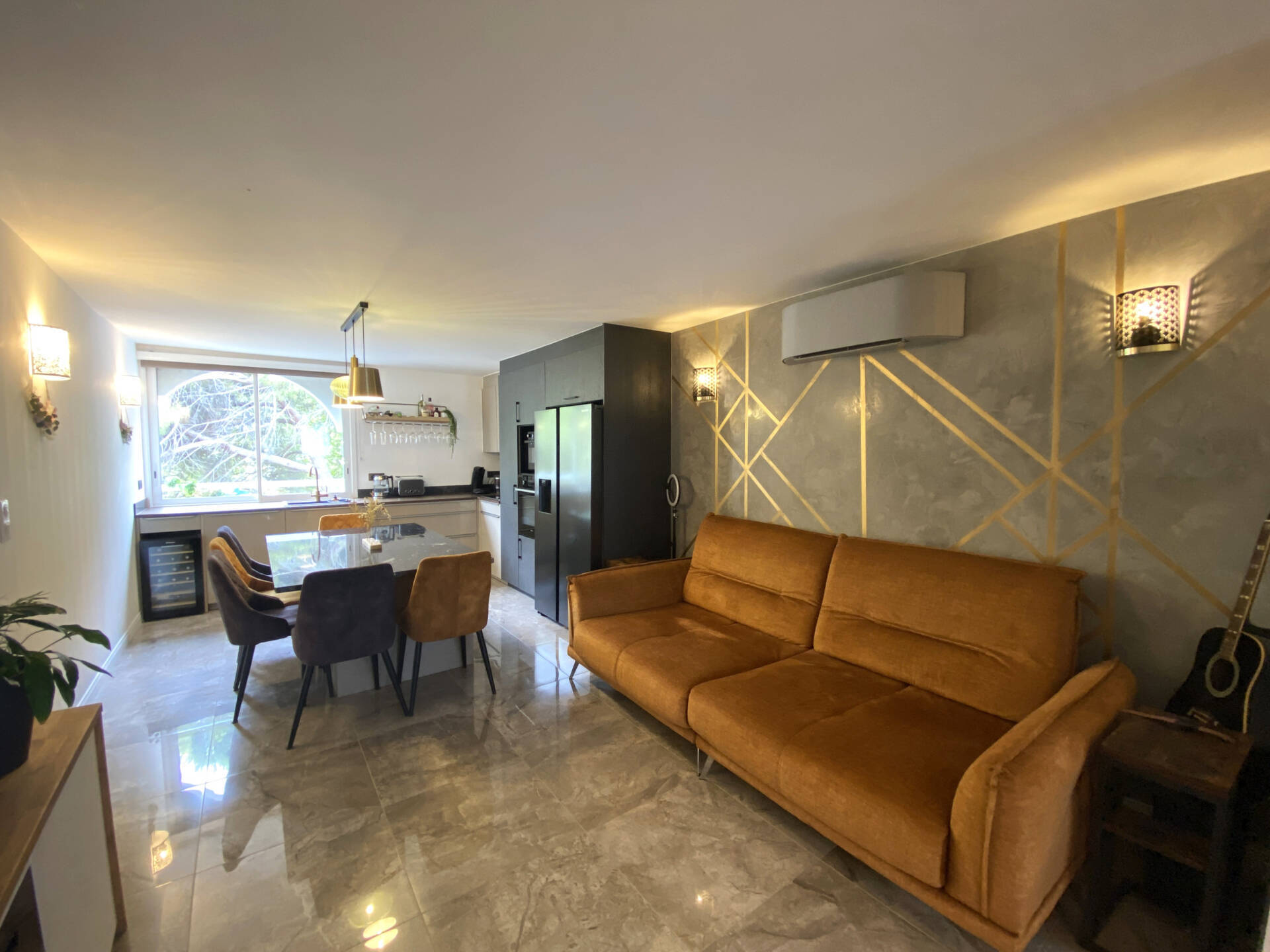 FDI Services Immobiliers vous présente en exclusivité au sein du quartier verdoyant et paisible du Ponant cet appartement d'exception : duplex traversant d'une surface utile de 60 m2 agrandi par sa loggia intégrée, soit 47,96 m2 en loi carrez. Il se situe au troisième et dernier étage de la résidence. Il a été entièrement rénové en 2023 avec des matériaux haut de gamme et un soin du détail rare, ce bien clés en main, vous offre un véritable confort de vie (isolé phoniquement et thermiquement), dans une ambiance chic et contemporaine. Au rez-de-chaussée vous disposez d'un séjour donnant sur une cuisine ouverte aménagée et équipée (cave à vin, lave-vaisselle intégré, réfrigérateur américain, filtration d'eau ..) d'une surface de 35 m2, ainsi que d'un WC. A l'étage vous disposez de deux chambres avec un parquet massif et équipées de placards. Une salle de bain (avec baignoire à balnéo) avec commodités. L'une des chambres dispose d'une terrasse en bois exotique de 7 m2 donnant sur la pinède. Cet appartement est idéal pour une résidence principale ou une résidence secondaire. Vous bénéficiez aussi d'une place de stationnement couverte au sein de la copropriété. N'attendez plus pour venir le visiter. Les informations sur les risques auxquels ce bien est exposé sont disponibles sur le site Géorisques : www.georisques.gouv.fr. Contactez votre conseillère Muriel BELTRAME au O6 88 84 78 47.