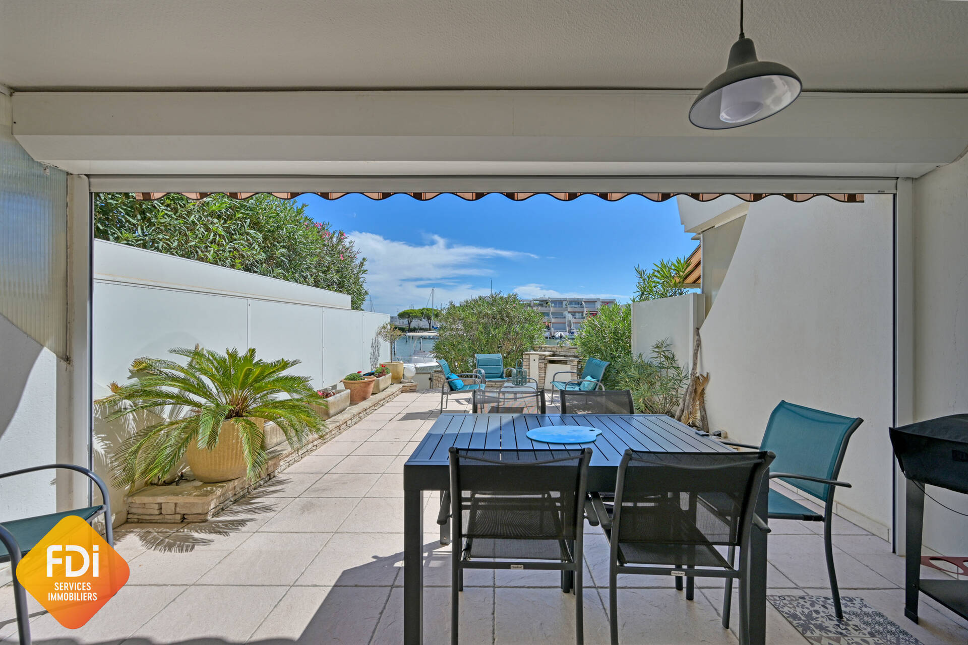 La marina se compose d’une entrée, d’une agréable pièce de vie avec cuisine ouverte donnant directement sur la terrasse et l’appontement, de deux chambres, d’une salle d’eau et d’un WC indépendant. Entièrement climatisée, elle dispose également de deux places de parking privatives ainsi que d’un appontement privatif offrant 7 mètres à quai, 5 mètres à l’entrée et 10 mètres de long.