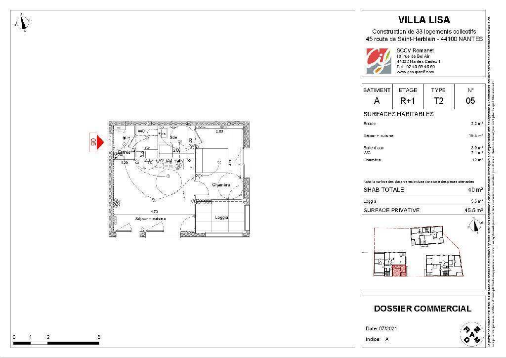 Situé au 1er étage sur 5 avec ascenseur, ce 40 m2 avec loggia de 5,5m2 profite d'un bel ensoleillement grâce à son orientation plein SUD.