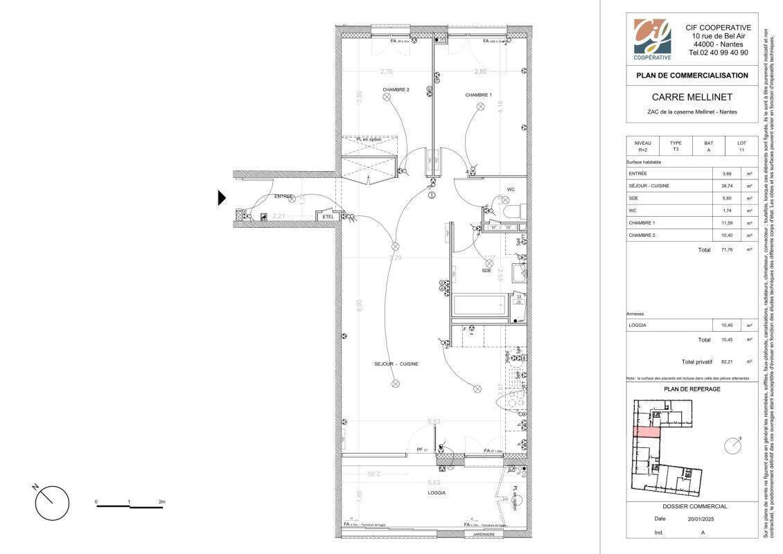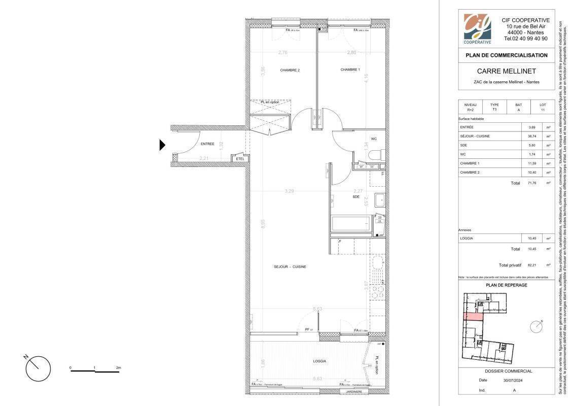 Beau T3 de 71,76 m² avec pièce de vie de 38,74 m² + loggia de 10,45 m² orientés sud/ouest