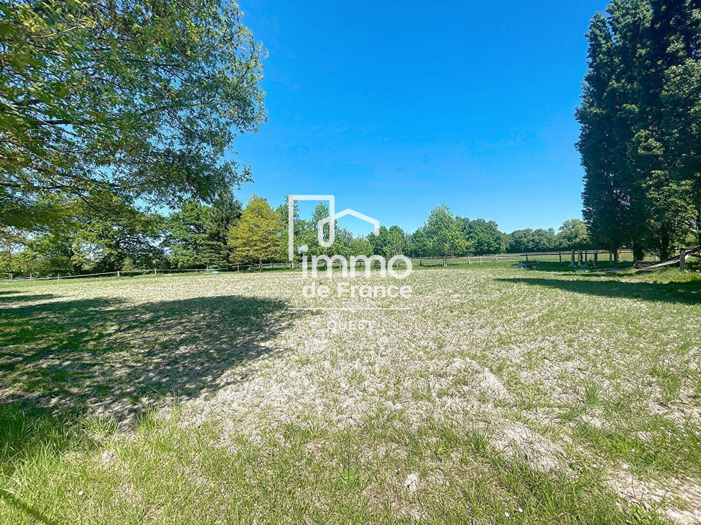 Au Sud de la longère, une cour plantée de chêne des marais ; au nord, un agréable jardin d'agrément (eucalyptus, magnolia, noyer, chêne). La suite du terrain se compose d'un ensemble de prairies avec 3 abris et une carrière en sable.