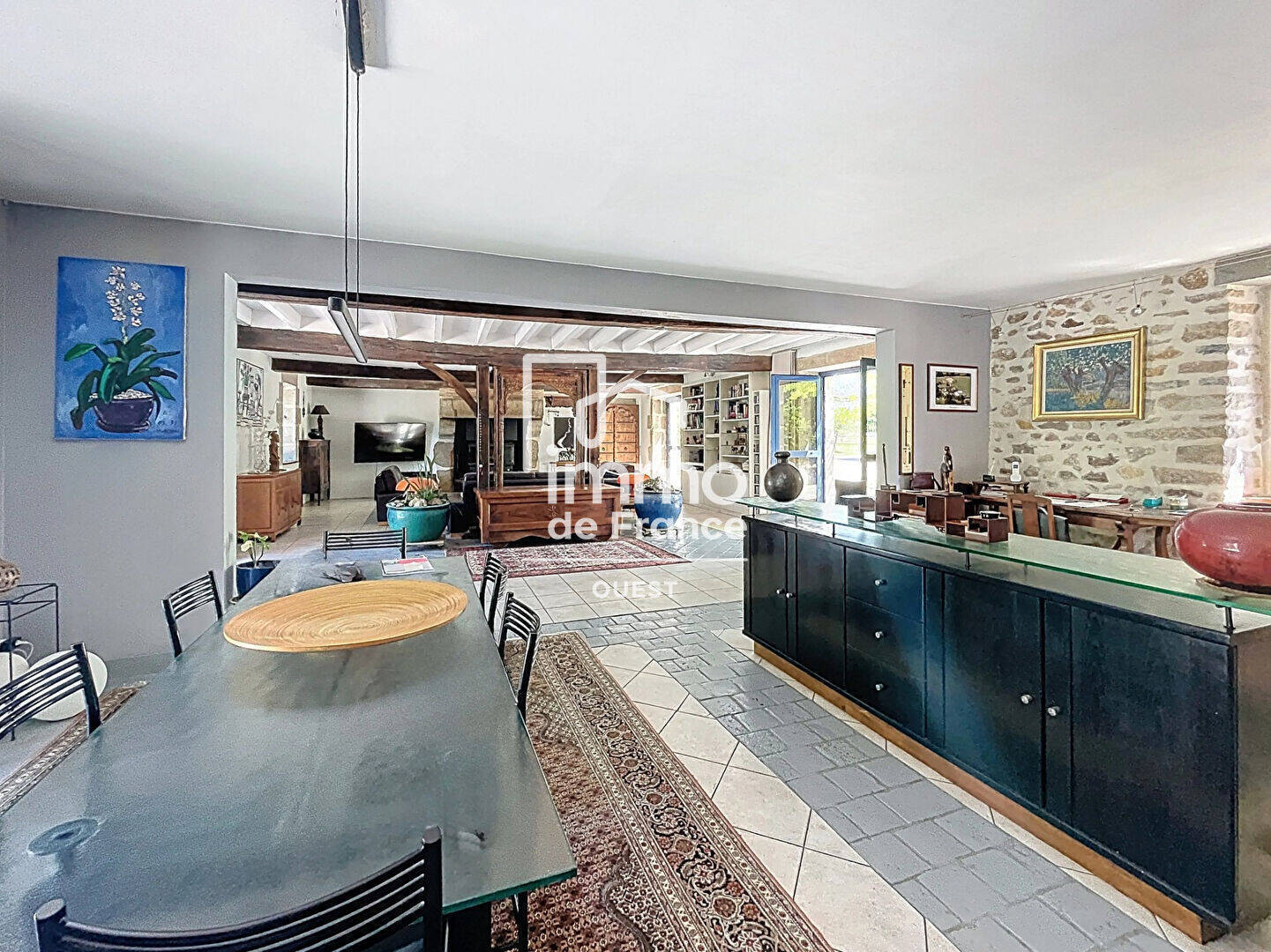 L'ensemble offre de très beaux volumes, totalisant environ 350m², et dispose de nombreuses ouvertures rendant la maison lumineuse, agréable et bien distribuée.