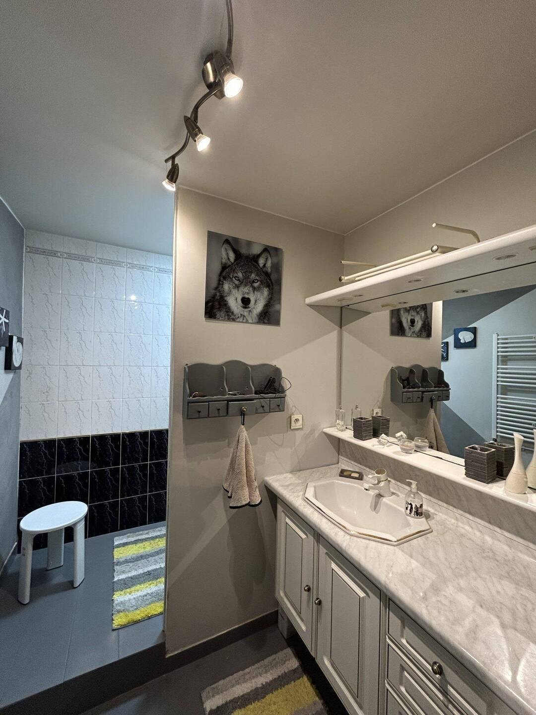 Superficie de 130 m² : une chambre avec salle d'eau en rez-de-chaussée, au 1er étage, 3 chambres et une salle d'eau supplémentaire, de nombreux placards