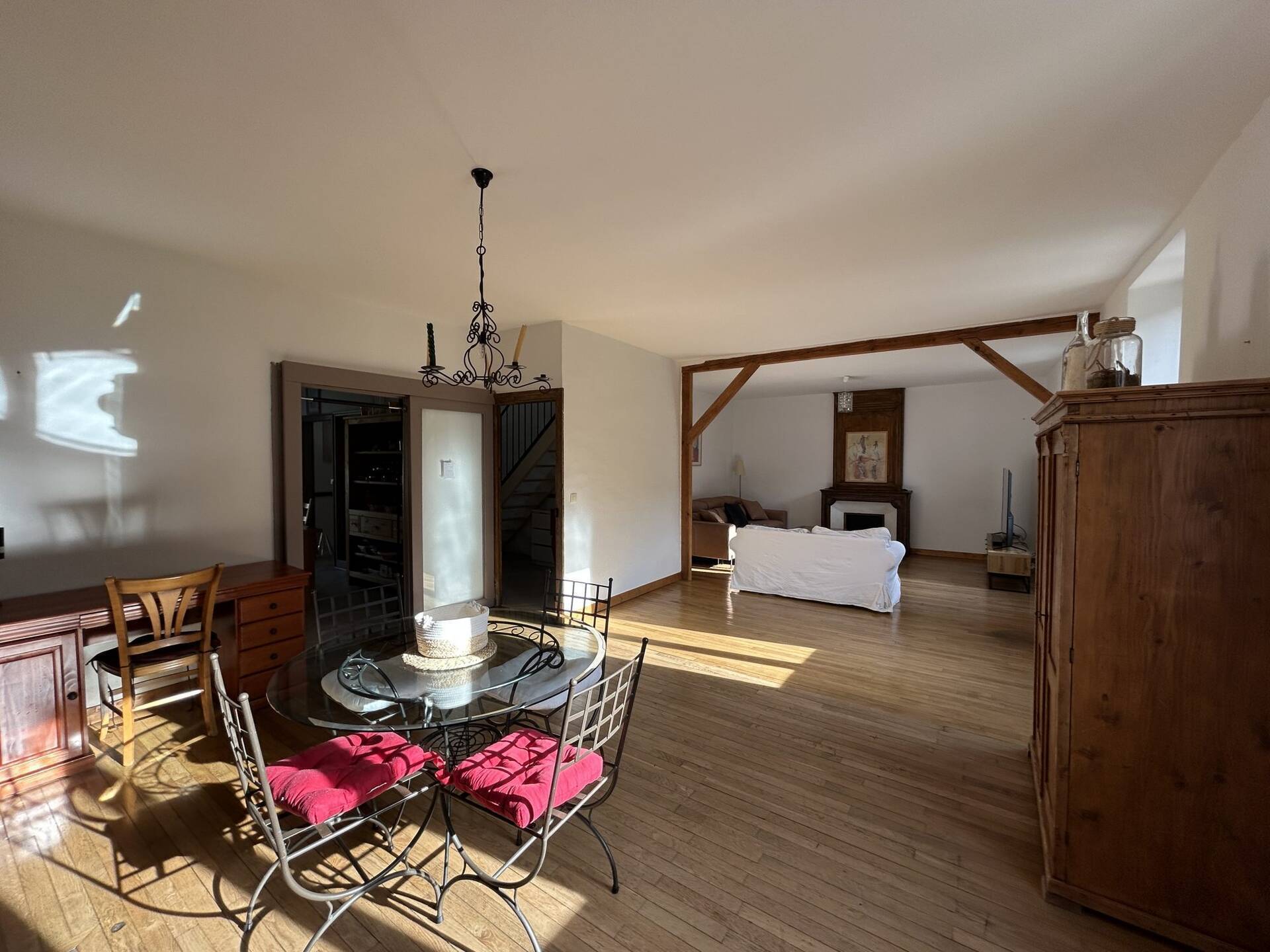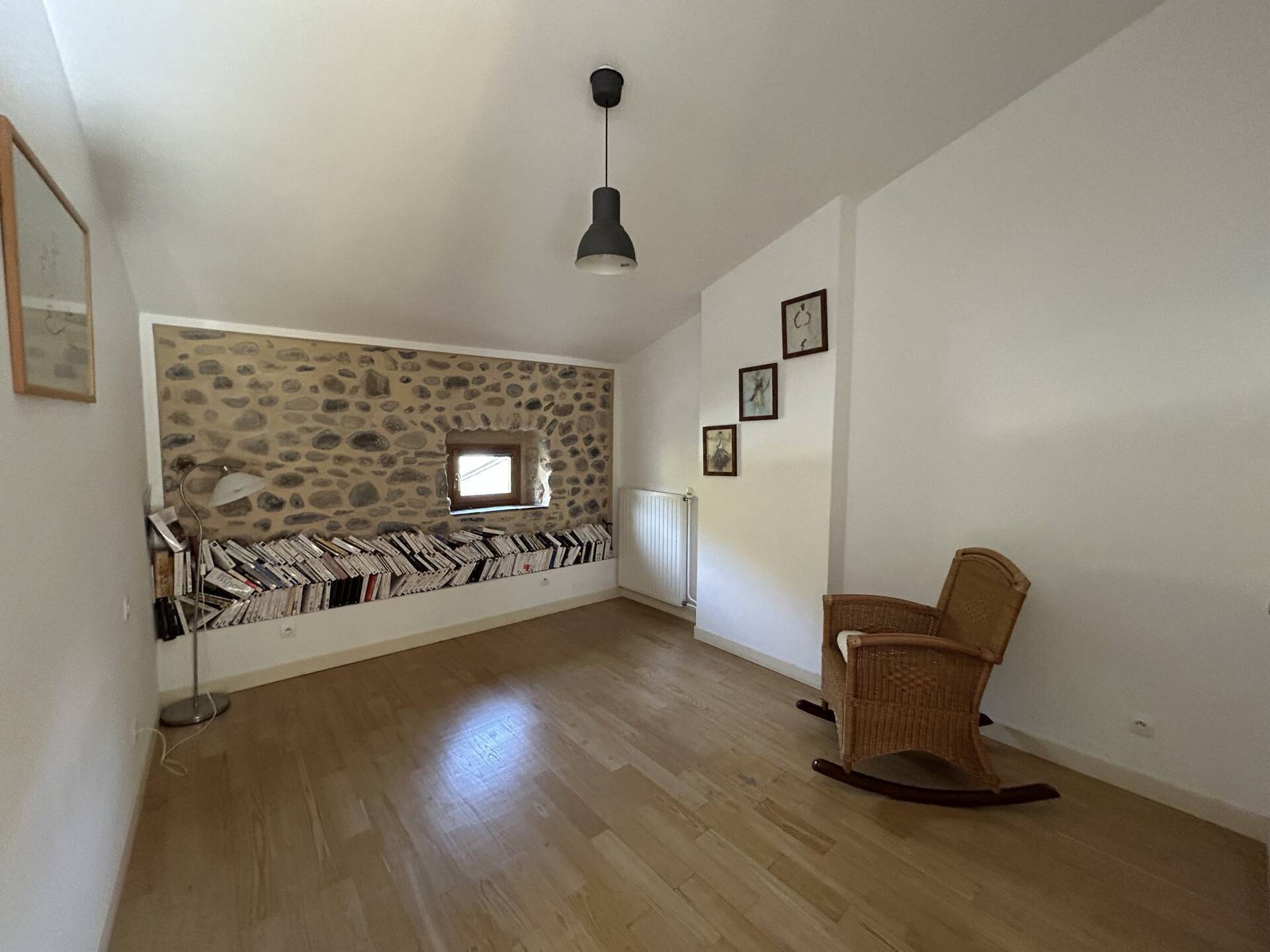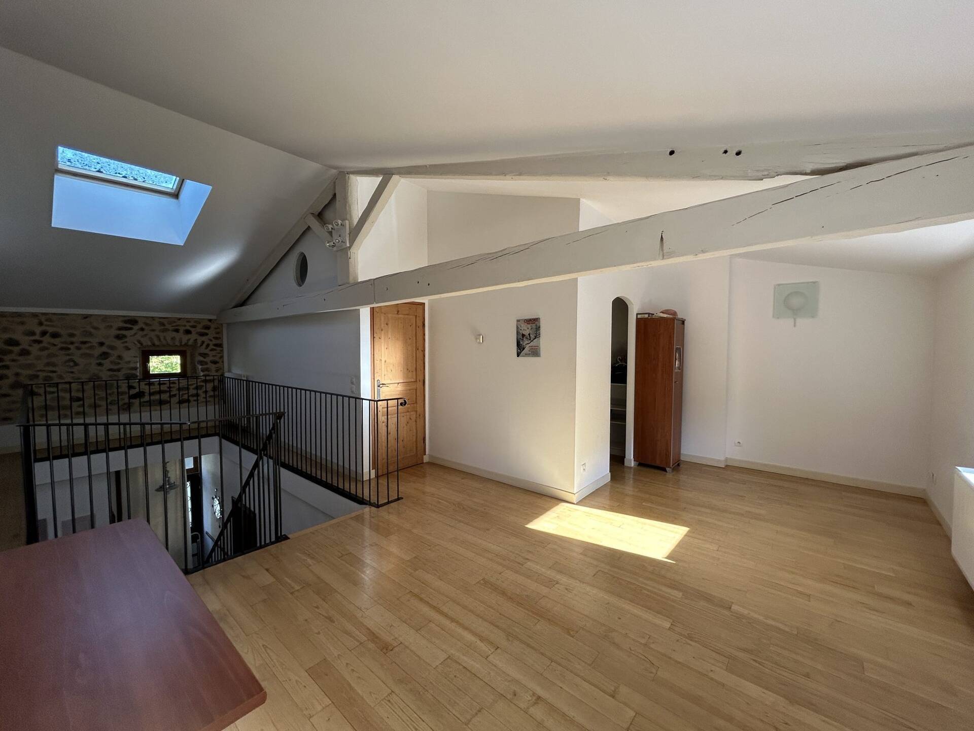 À l'étage, une spacieuse mezzanine mène à deux chambres, dont une disposant d'un dressing. Vous y trouverez également une salle d'eau, des WC séparés, ainsi qu'un accès aux combles, offrant un beau potentiel d'aménagement supplémentaire.